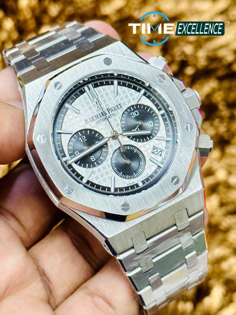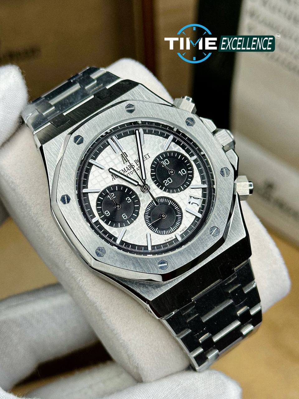 Audemars Piguet AAA Grade Royal Oak Color Diamond Bezel White Tapisserie Plaid Dial Counters Date Stainless Steel Case Strap Watch