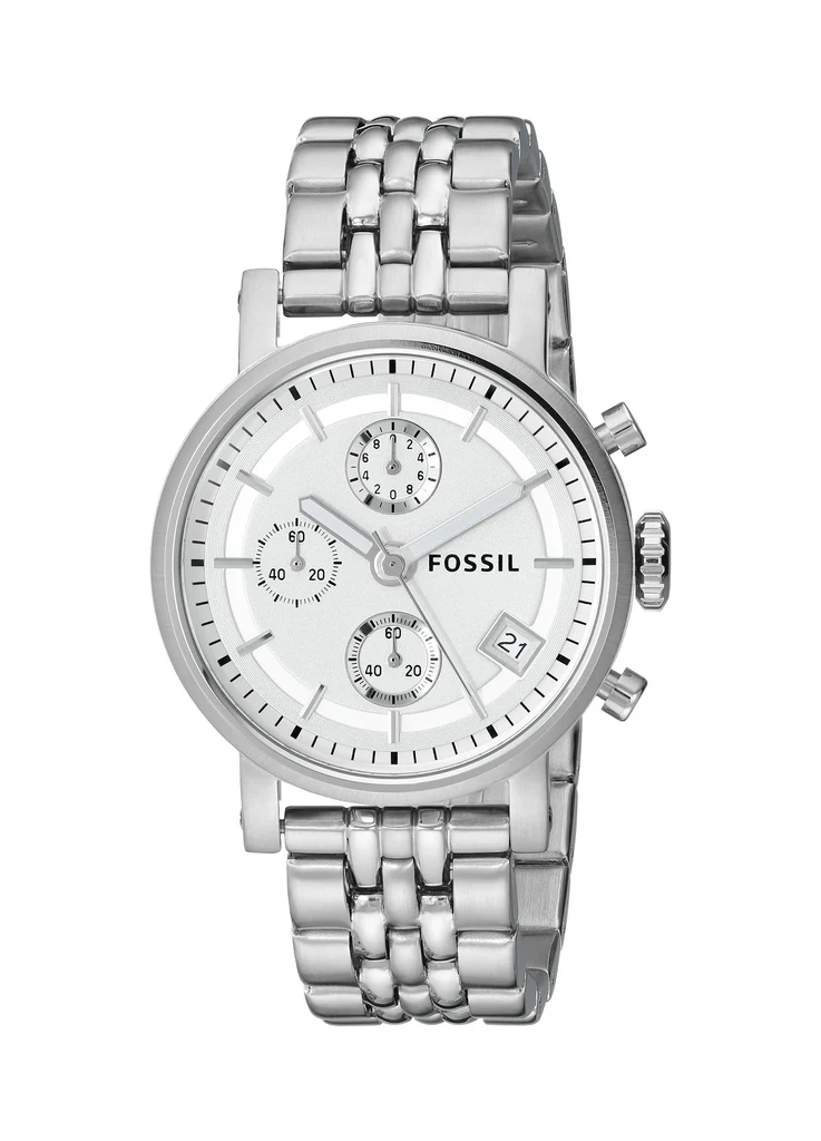 Fossil Boyfriend Chronograph Silver Dial Silver Steel Strap Watch For Women - ES2198