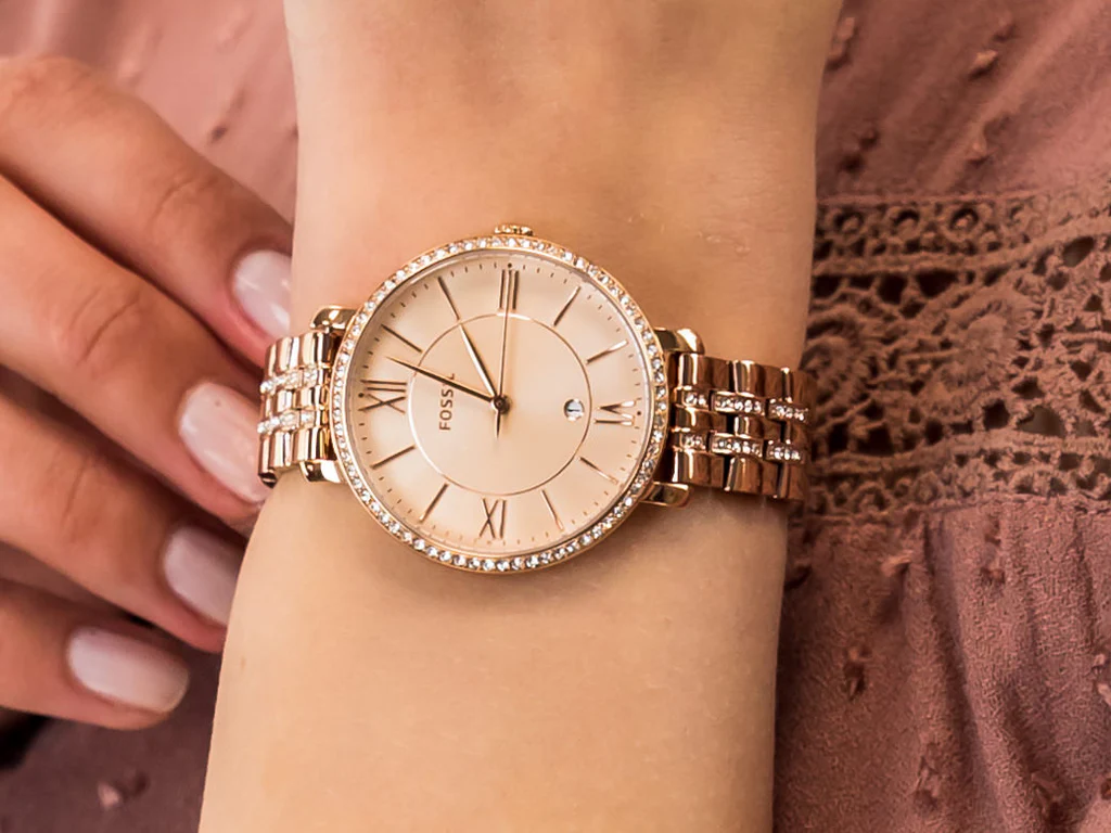 Fossil Jacqueline Rose Gold Dial Rose Gold Steel Strap Watch For Women - ES3546