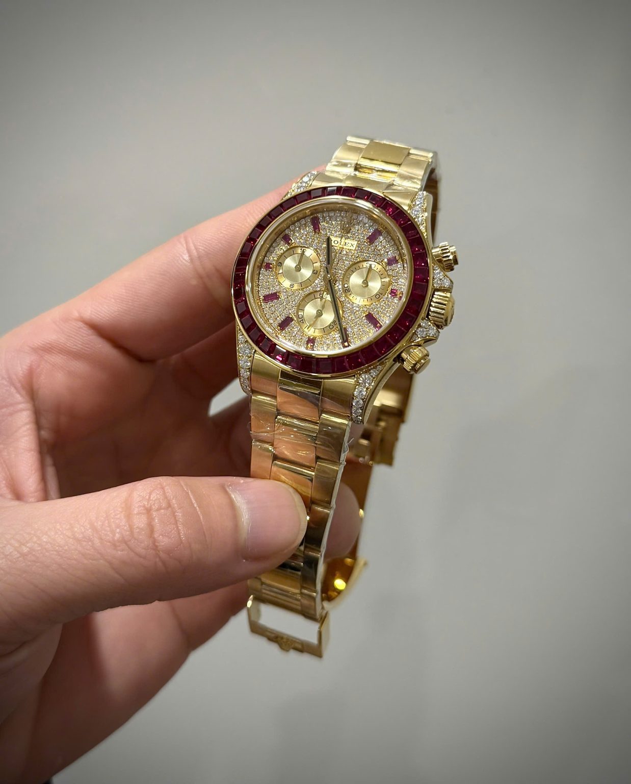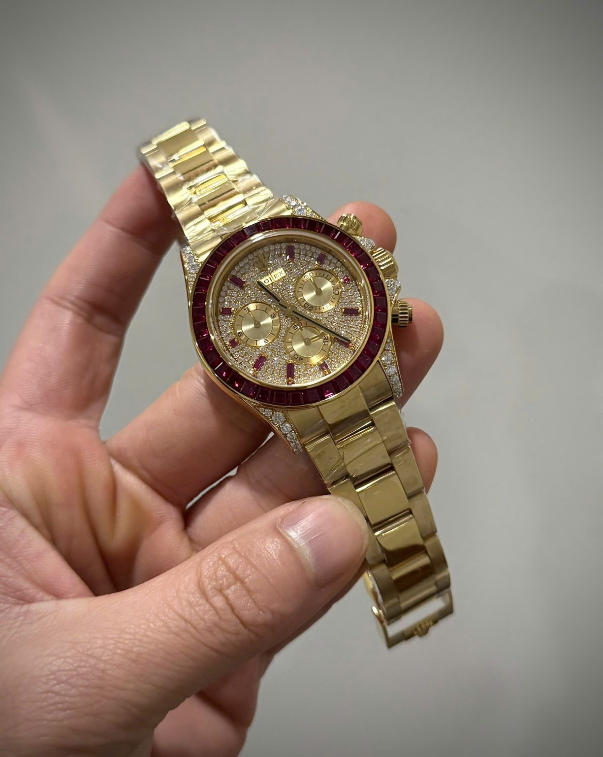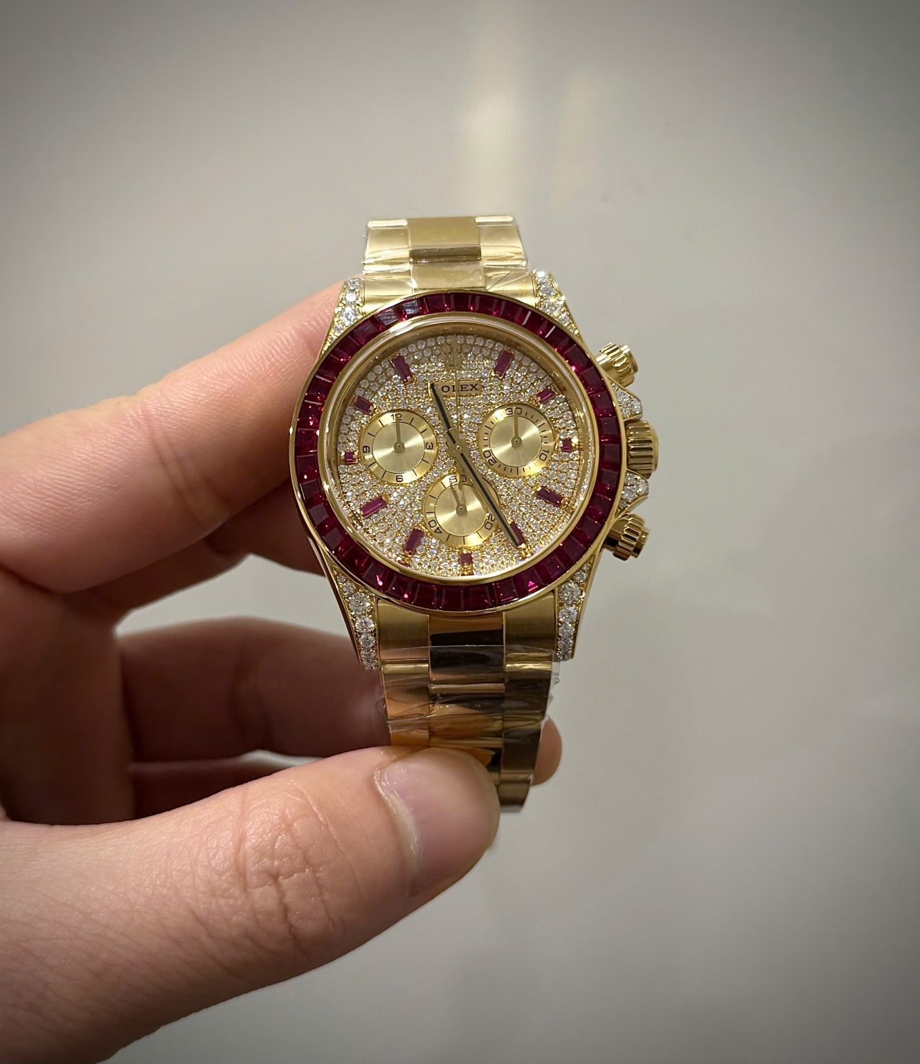 Rolex Swiss 1:1 Daytona 116598RBOW Refined Moissanite & Synthentic Gemstone 18K Gold Wrapped 40mm