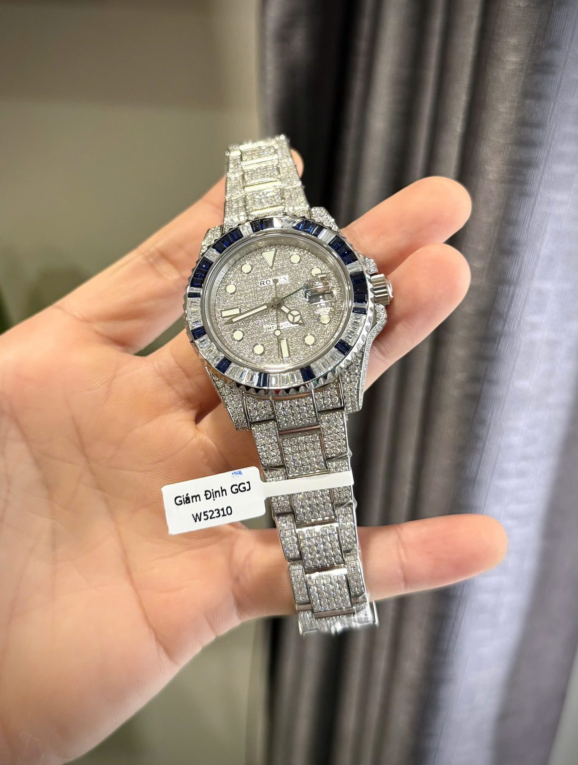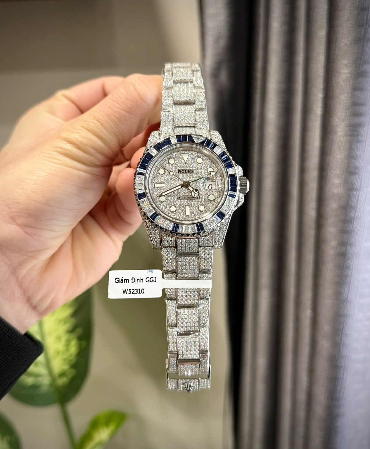 Rolex Swiss 1:1 GMT Master II Customized Moissanite Diamonds & Sapphire Gemstone 40mm
