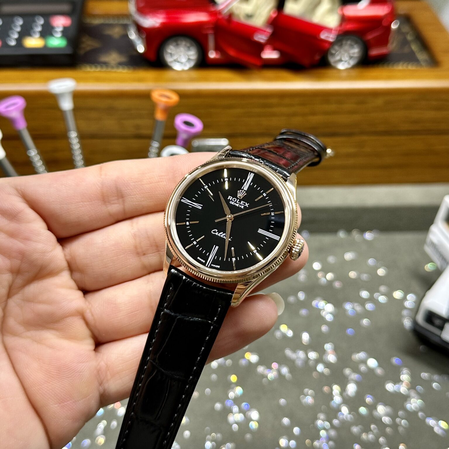 Rolex Swiss 1:1 Watch Cellini Time 50505 Black Dial Leather Strap 39mm