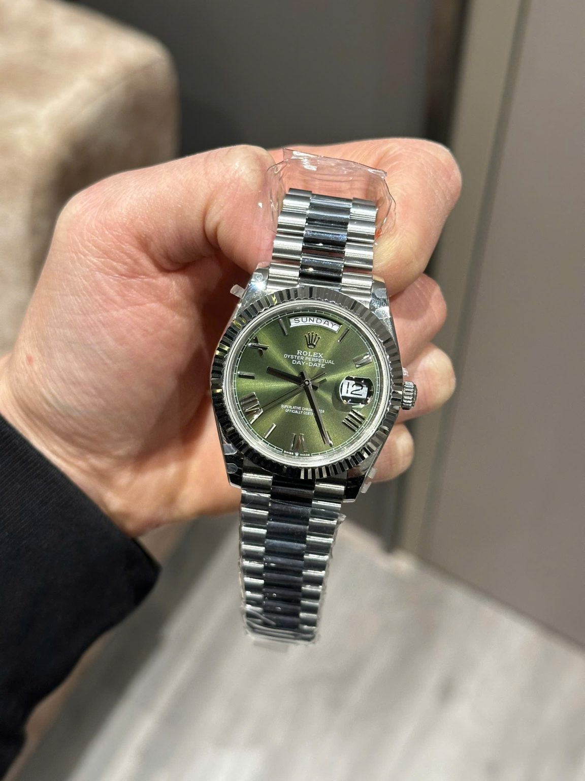 Rolex Swiss 1:1 Watches Day-Date 228236 Olive Green Dial GM Factory 178 Grams 40mm