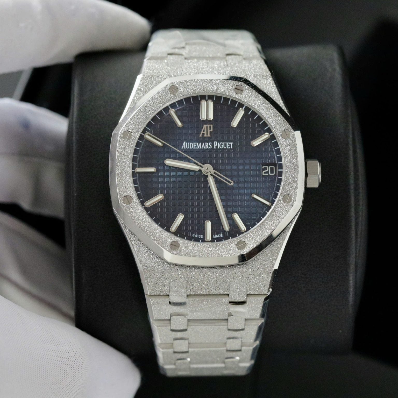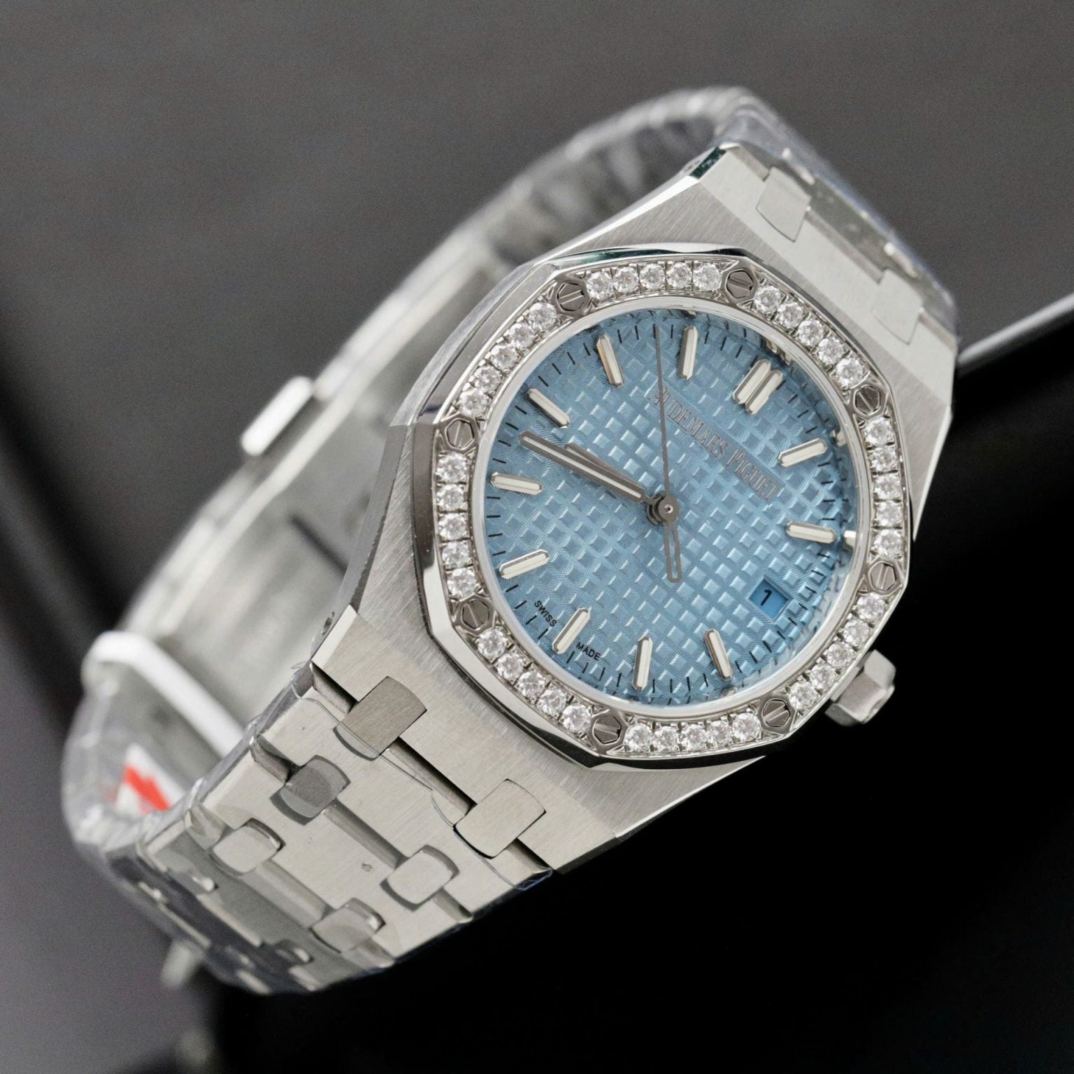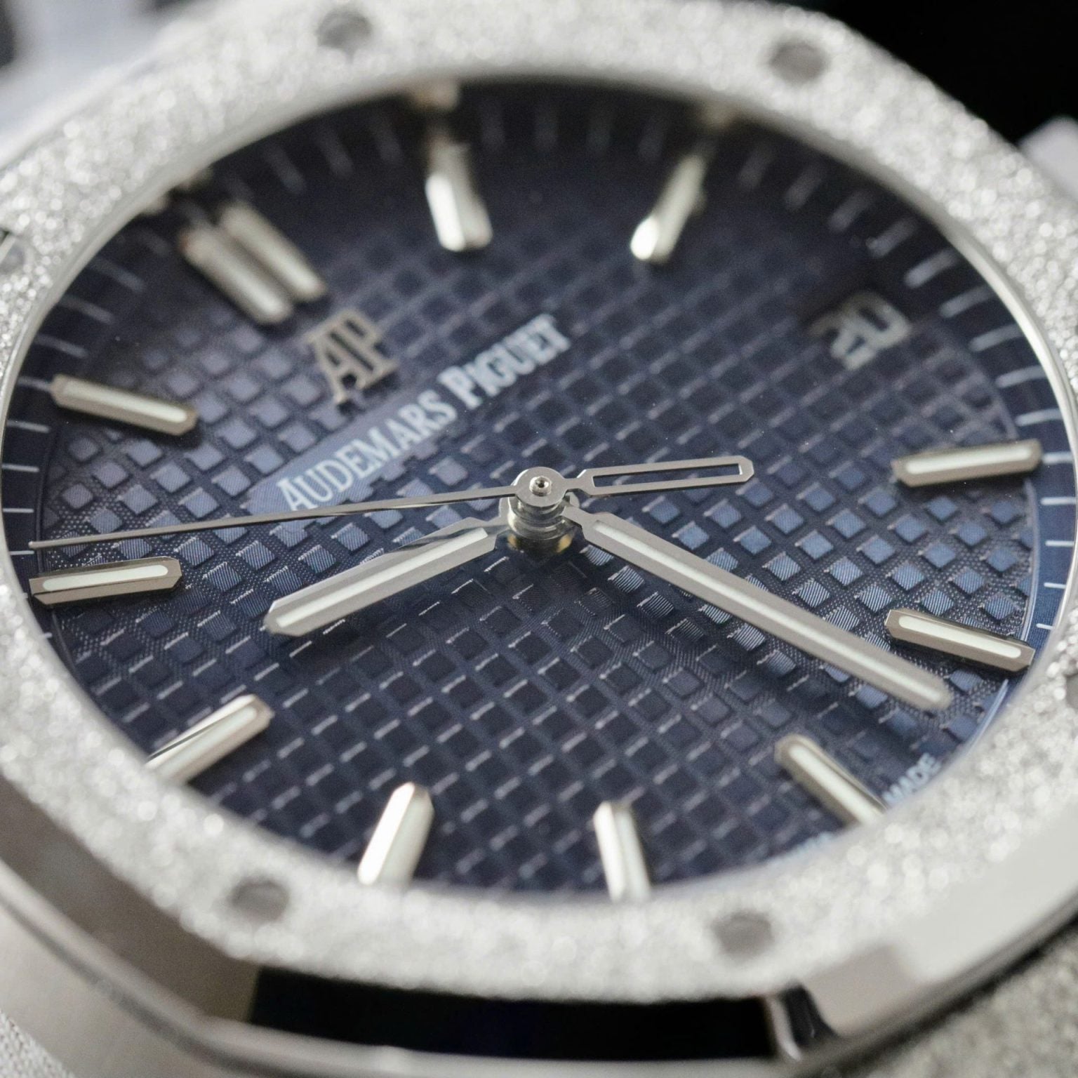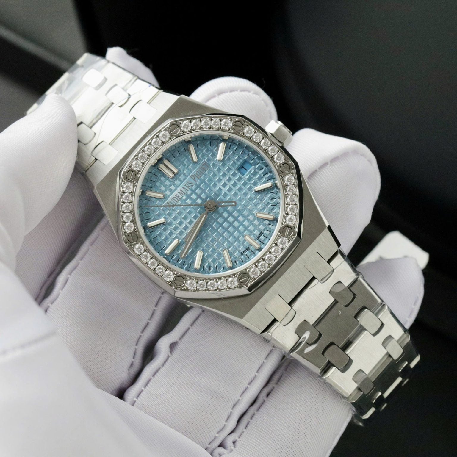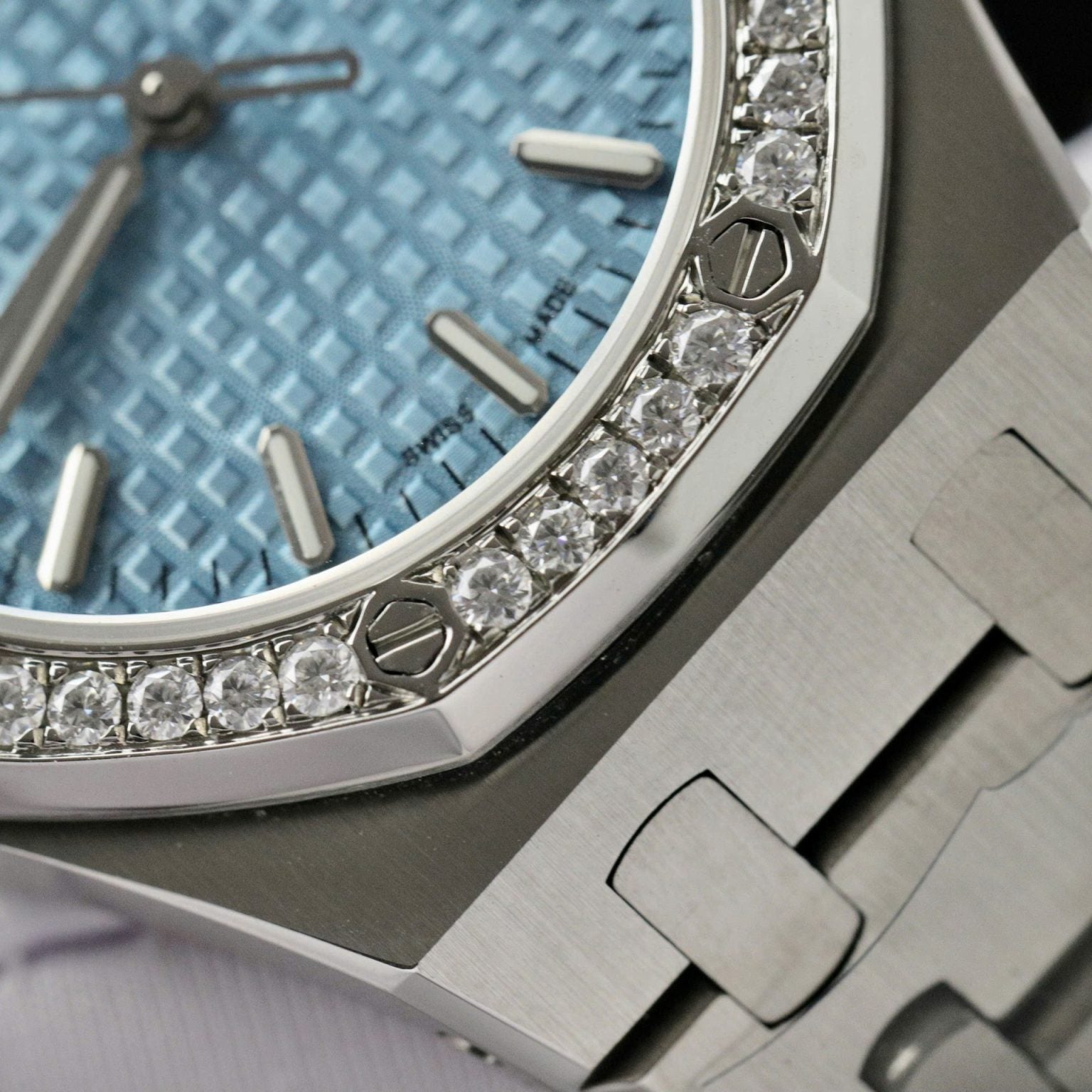 Audemars Piguet Royal Oak Swiss 1:1 Watch Ice Blue Dial Bezel Diamonds Moissanite 34mm