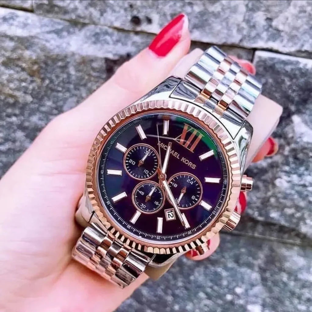 Michael Kors Lexington Black Dial Two Tone Stainless Steel Strap Watch For Men - MK8561