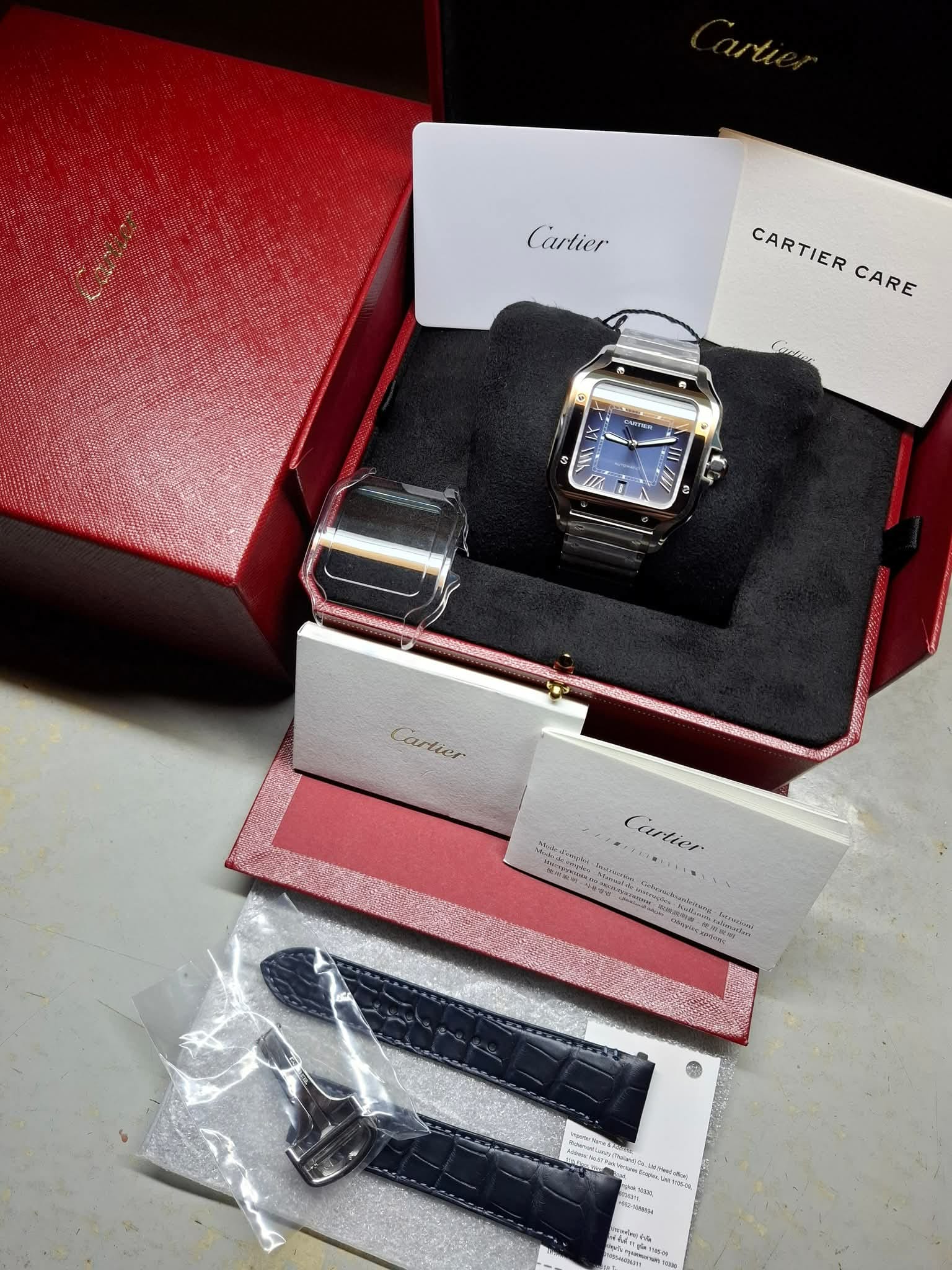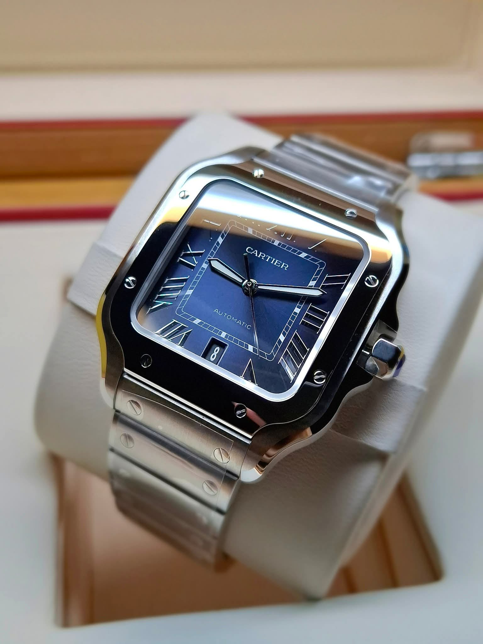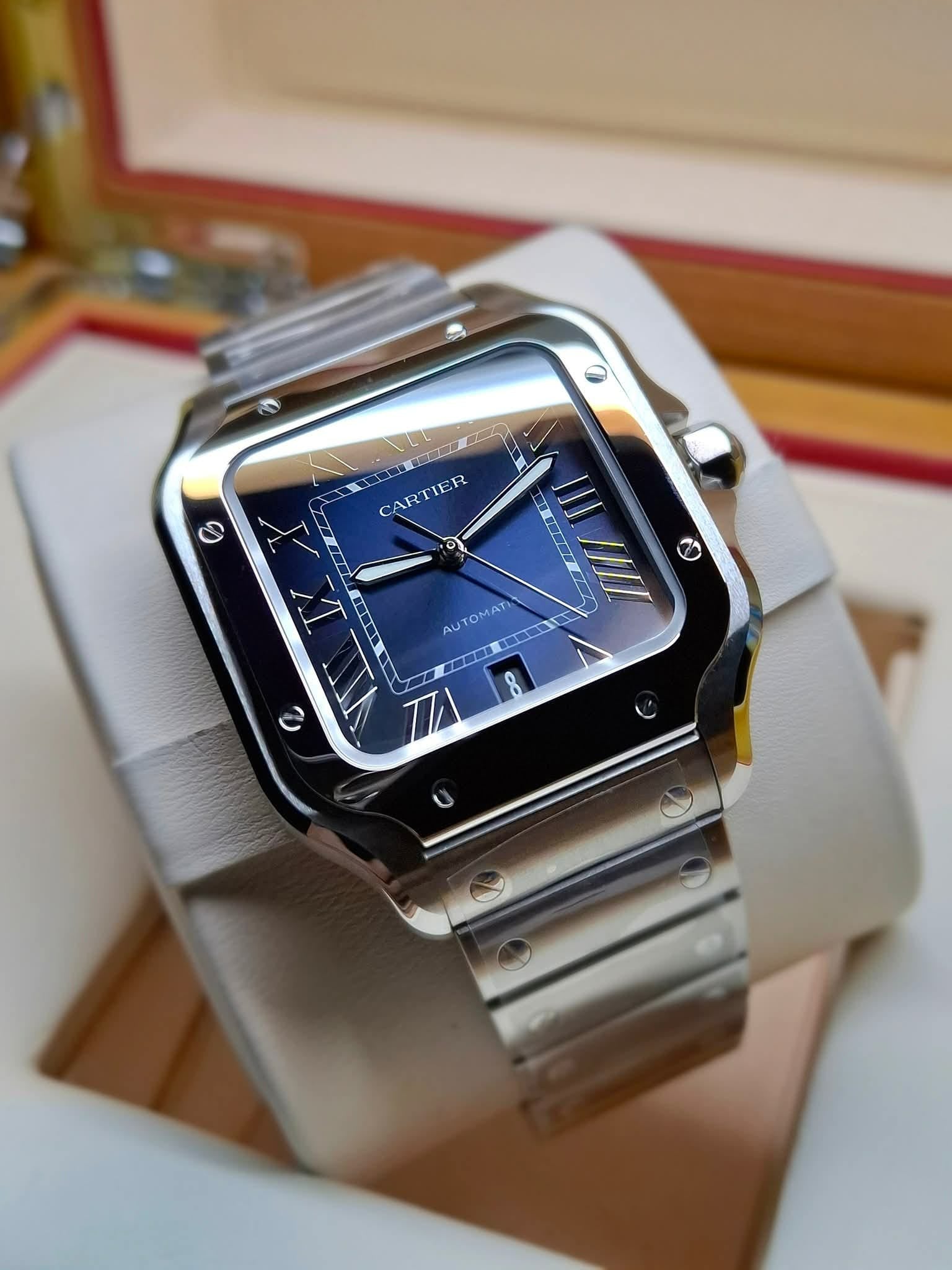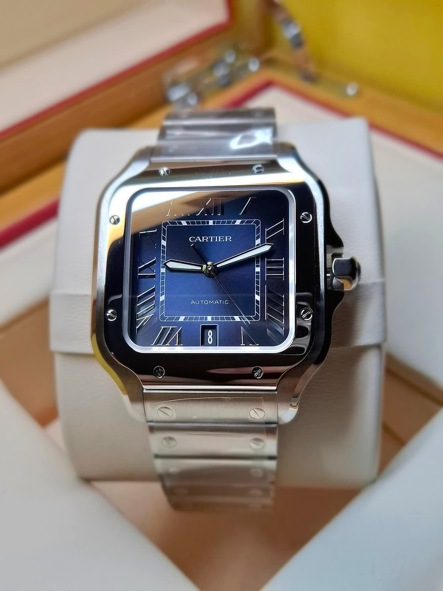 Cartier Original Santos Blue Stahl Automatic Herrenuhr Ref. WSSA0030