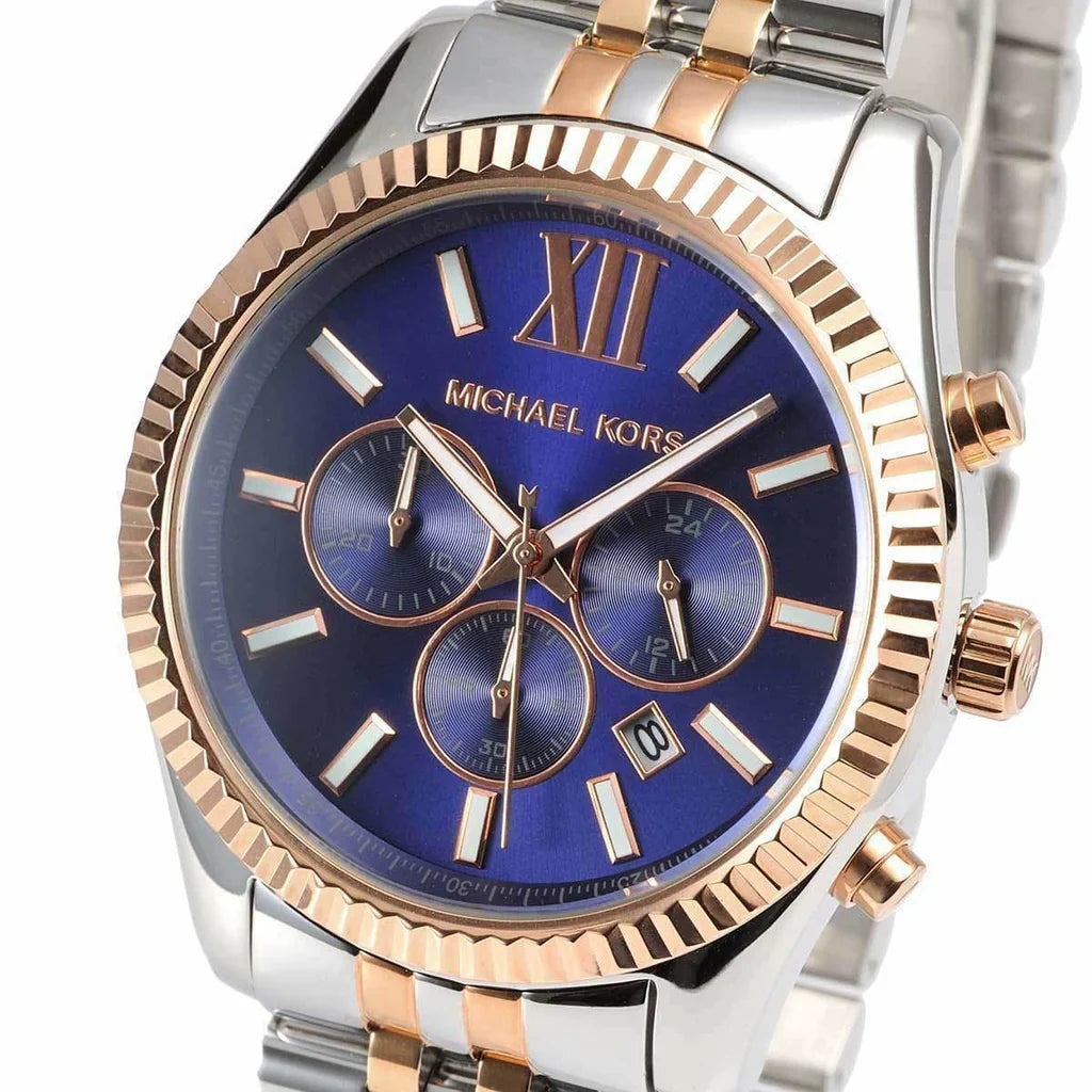 Michael Kors Lexington Blue Dial Two Tone Steel Strap Watch For Men - MK8412