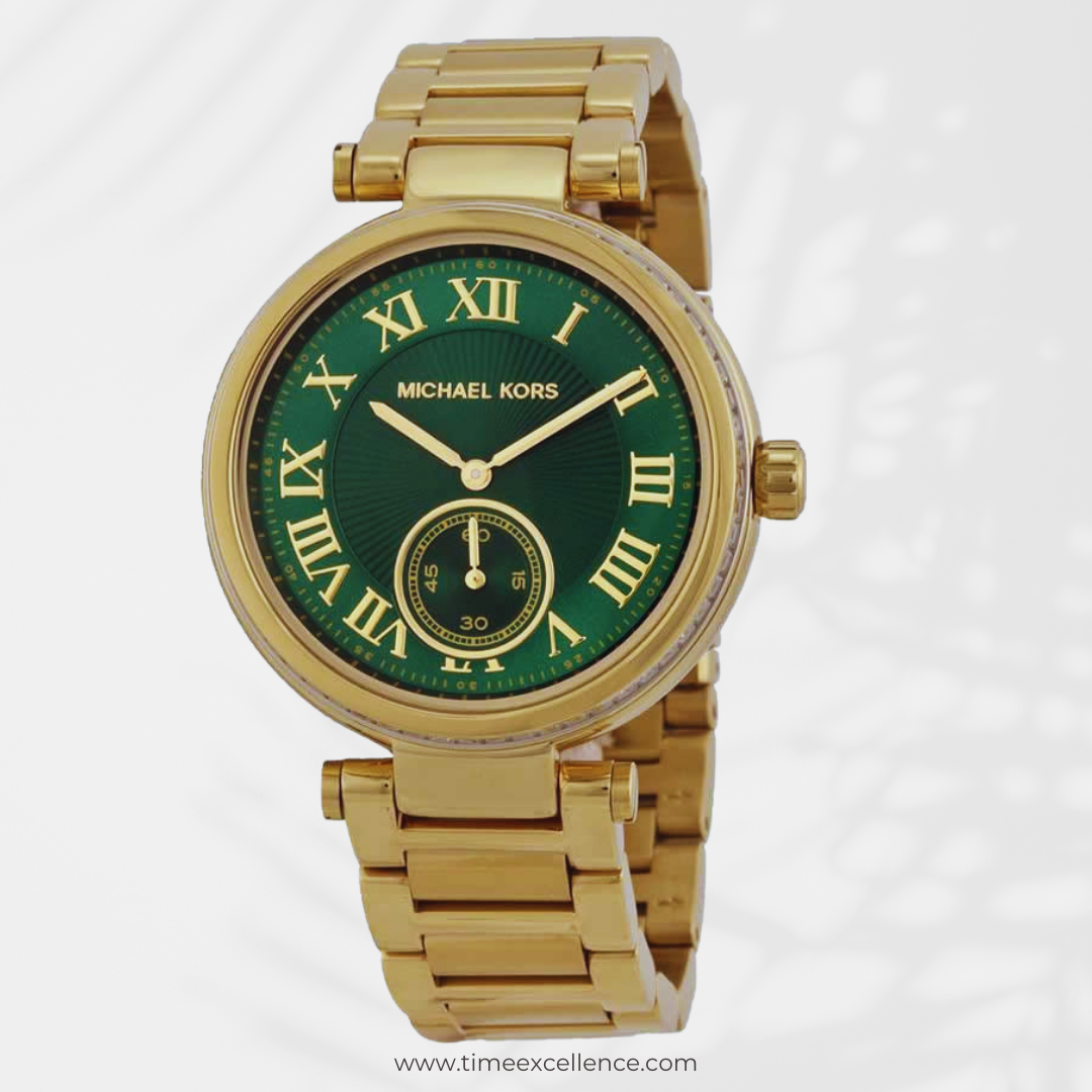 Michael Kors Skylar Green Dial Gold Steel Strap Watch For Women - MK6065