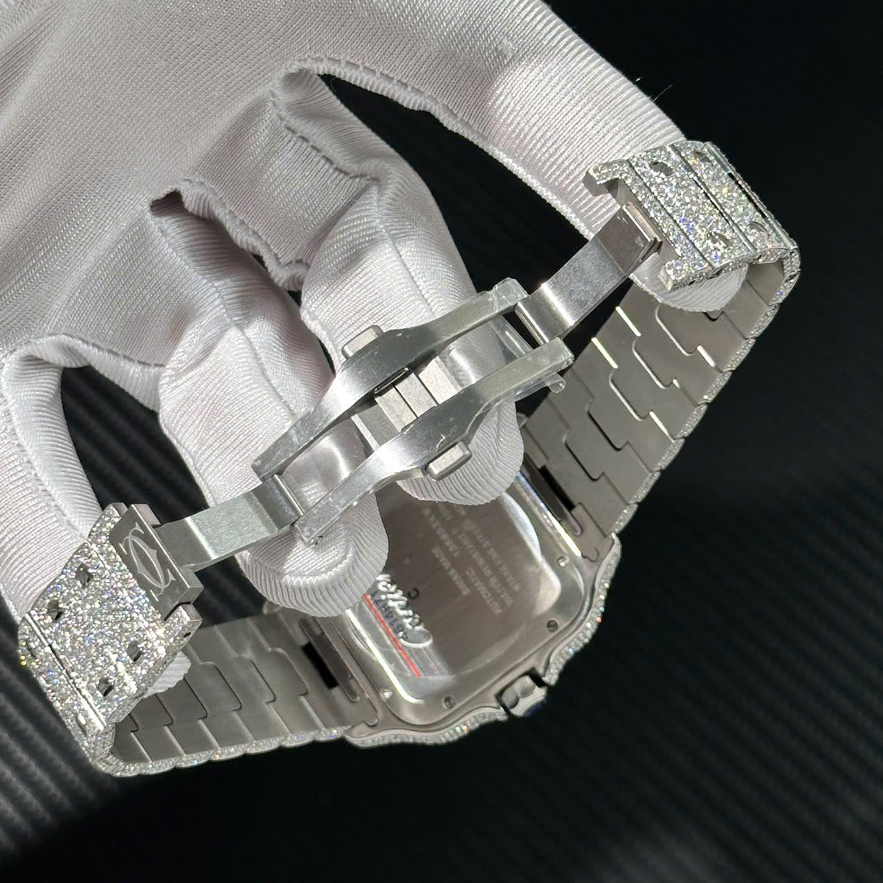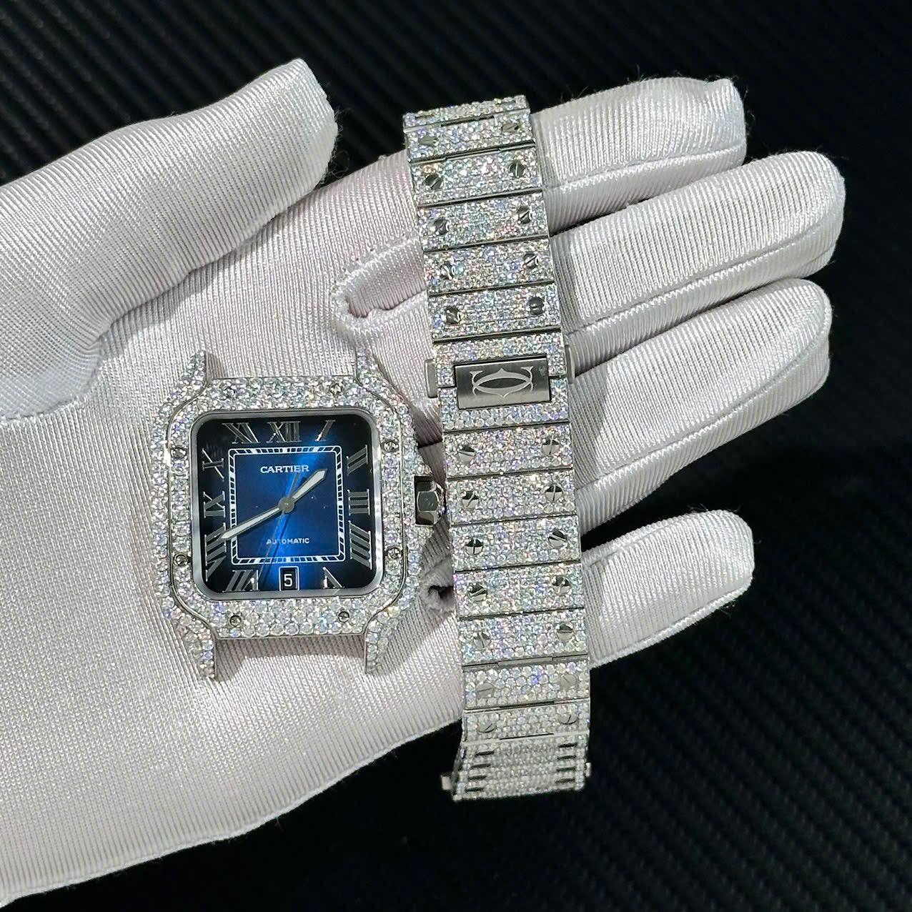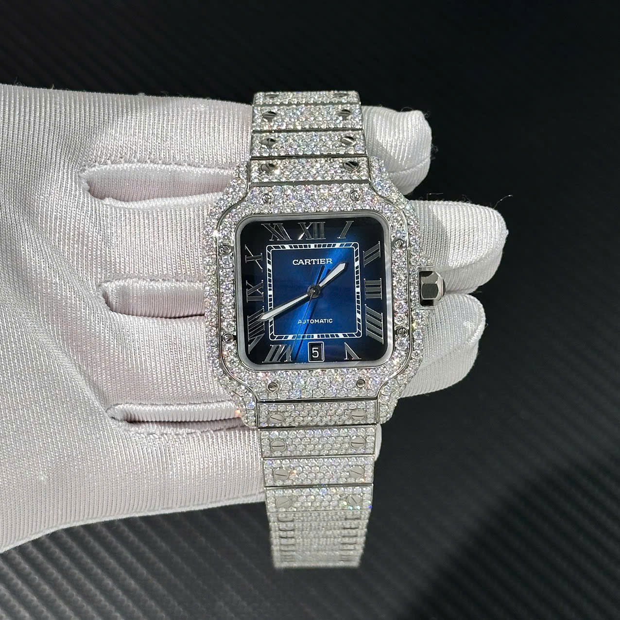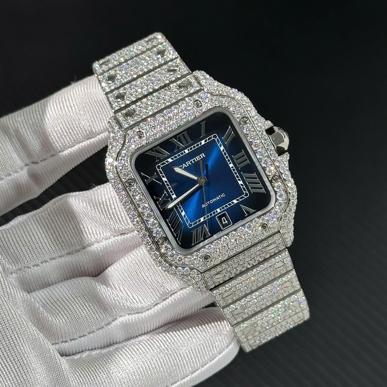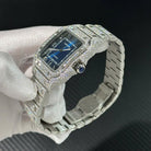 Cartier Santos Customs Full Moissanite Diamonds Hong Kong Blue Dial Swiss 1:1 Watch 39.8mm