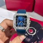 Cartier Santos Swiss 1:1 Watch Blue Dial Custom Moissanite Diamonds 39.8mm