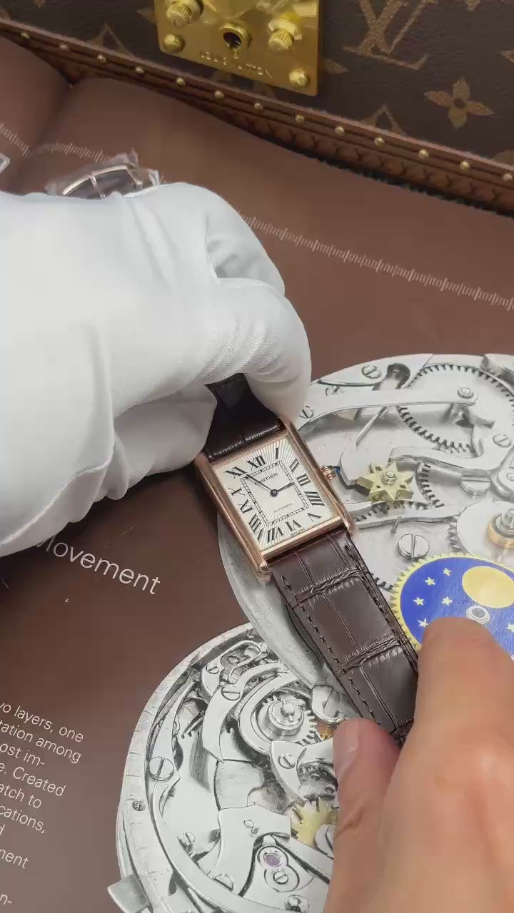Cartier Tank Louis Swiss 1:1 Watch White Dial Case Rose Gold Leather Strap Brown 27.8×38.1mm