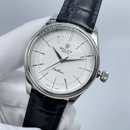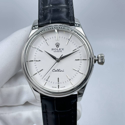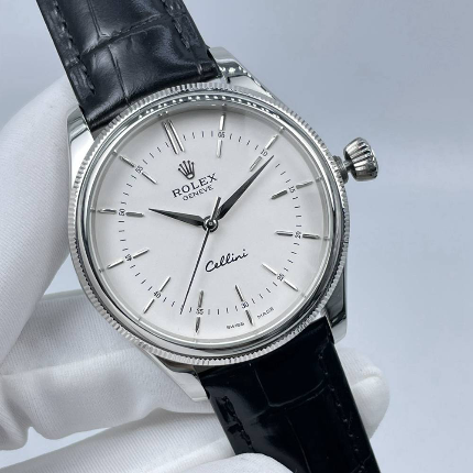 Rolex Cellini silver case 39mm white dial black/brown leather strap AAA automatic Sx