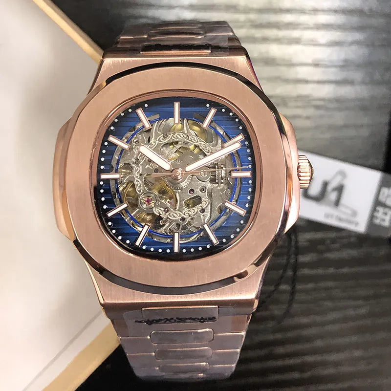 PATEK PHILIPPE EXQUISITE BRONZE CHAIN DESIGNER WRISTWATCH WITH SILVER & NAVY BLUE SCREEN