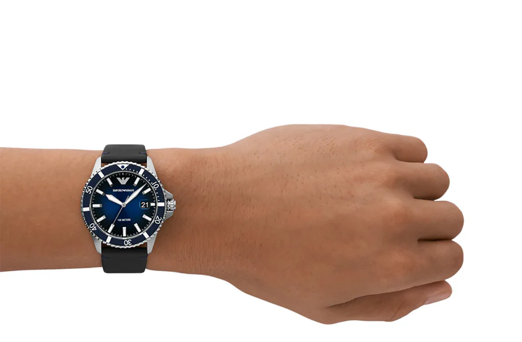 Emporio Armani Diver Three-Hand Quartz Blue Dial Blue Leather Strap Watch For Men - AR11516