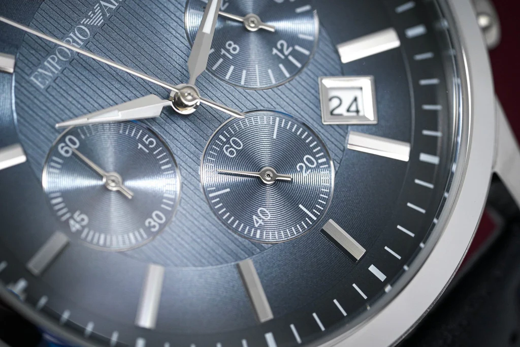 Emporio Armani Classic Chronograph Blue Dial Blue Leather Strap Watch For Men - AR2473