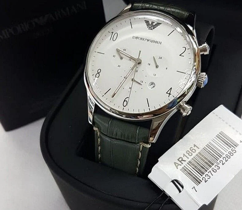 Emporio Armani Chronograph Champagne Dial Green Leather Strap Watch For Men - AR1722