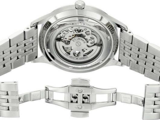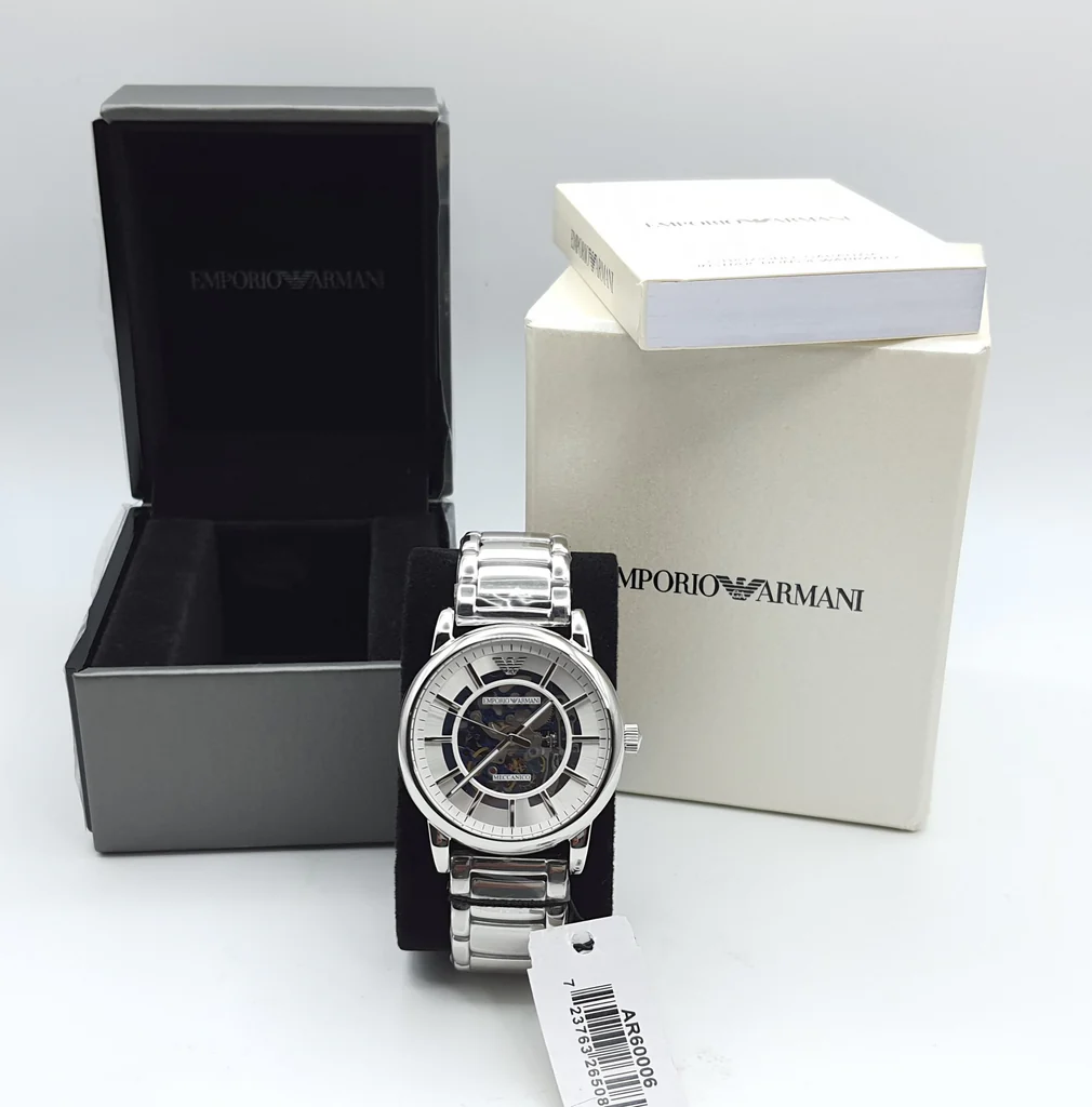 Emporio Armani Meccanico Automatic Silver Dial Silver Steel Strap Watch For Men - AR60006