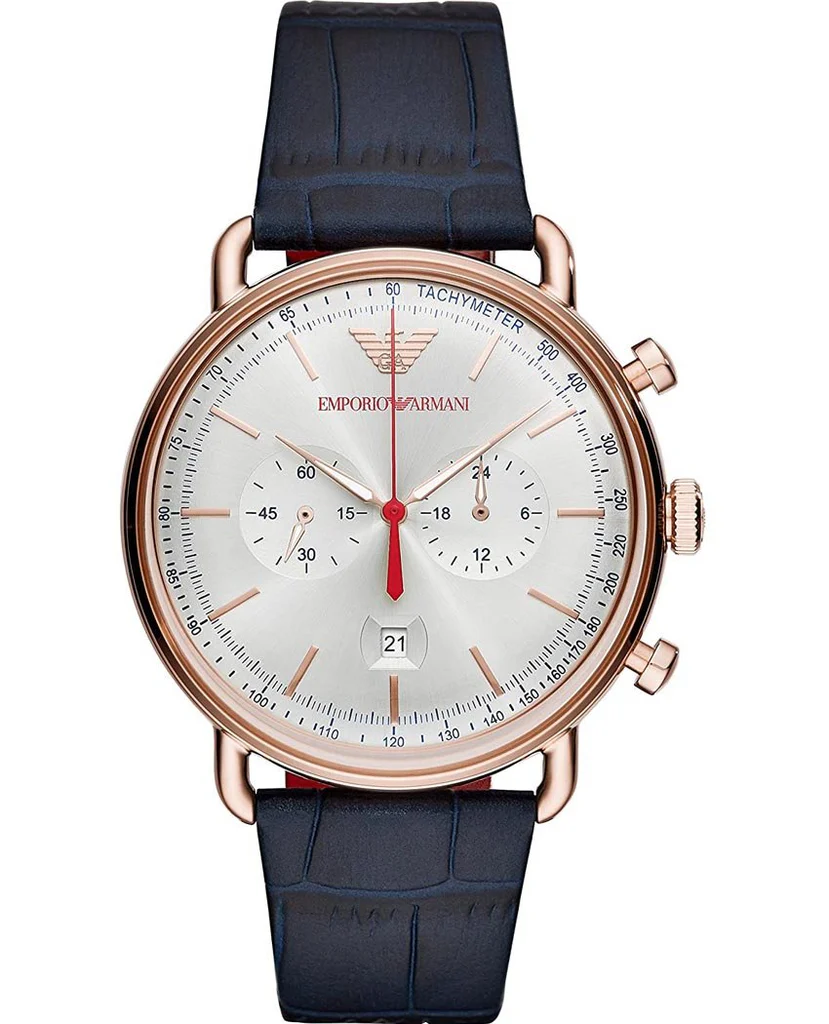 Emporio Armani Aviator Silver Dial Blue Leather Strap Watch For Men - AR11123