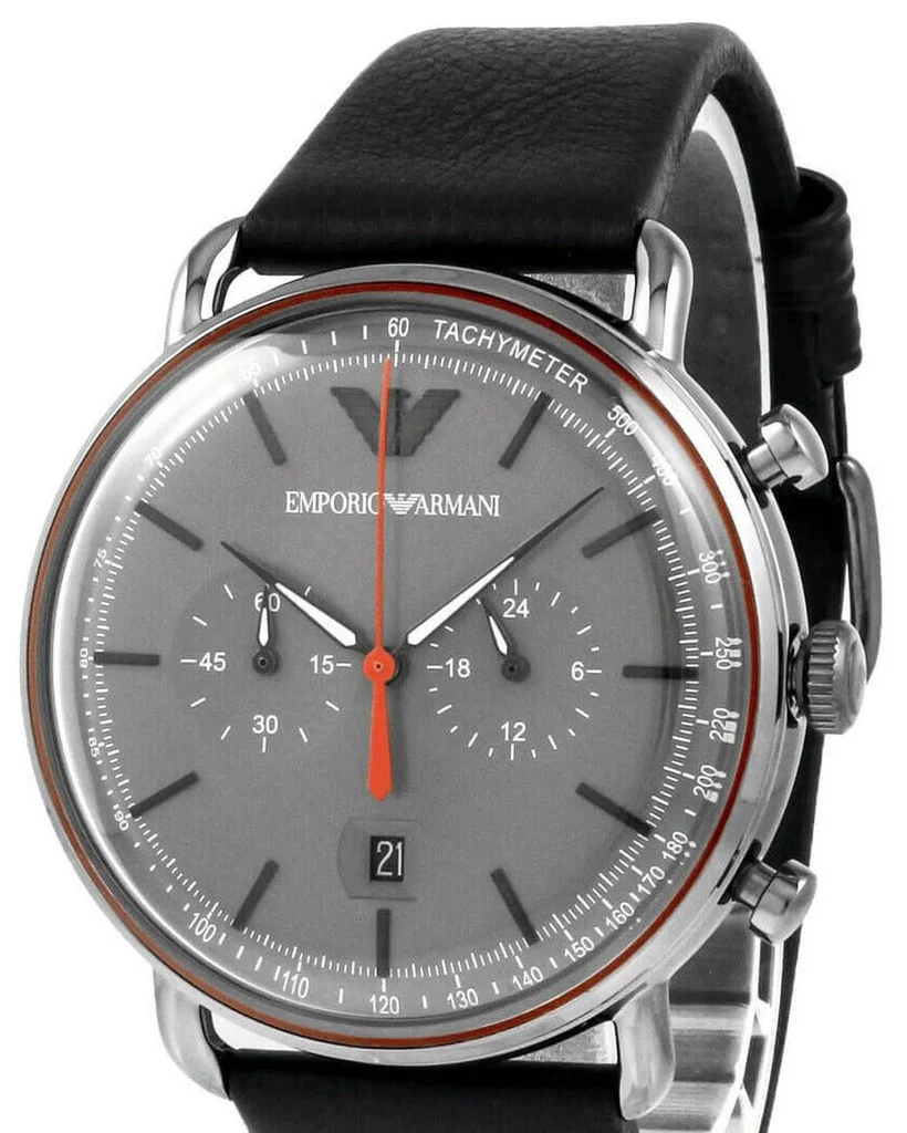 Emporio Armani Aviator Grey Dial Grey Leather Strap Watch For Men - AR11168