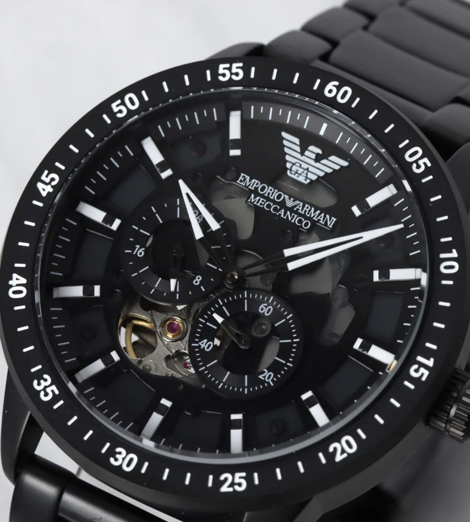 Emporio Armani Meccanico Automatic Black Dial Black Steel Strap Watch For Men - AR60054