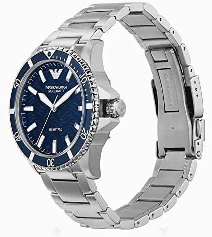 Emporio Armani Meccanico Automatic Blue Dial Silver Steel Strap Watch For Men - AR60059