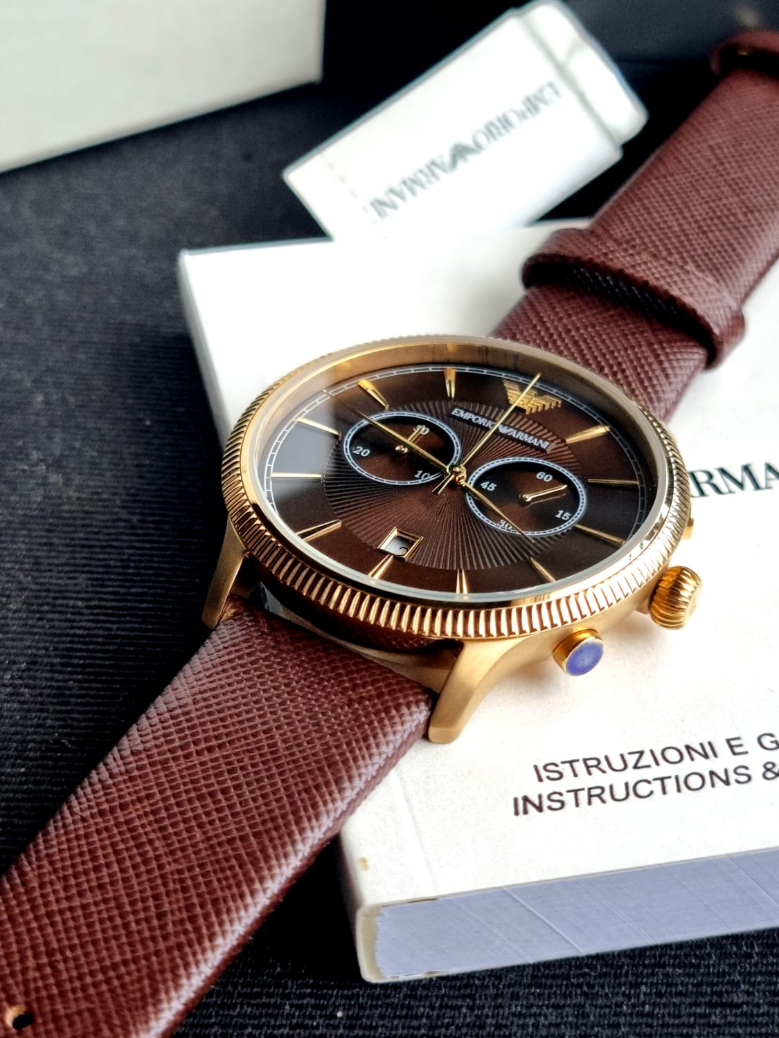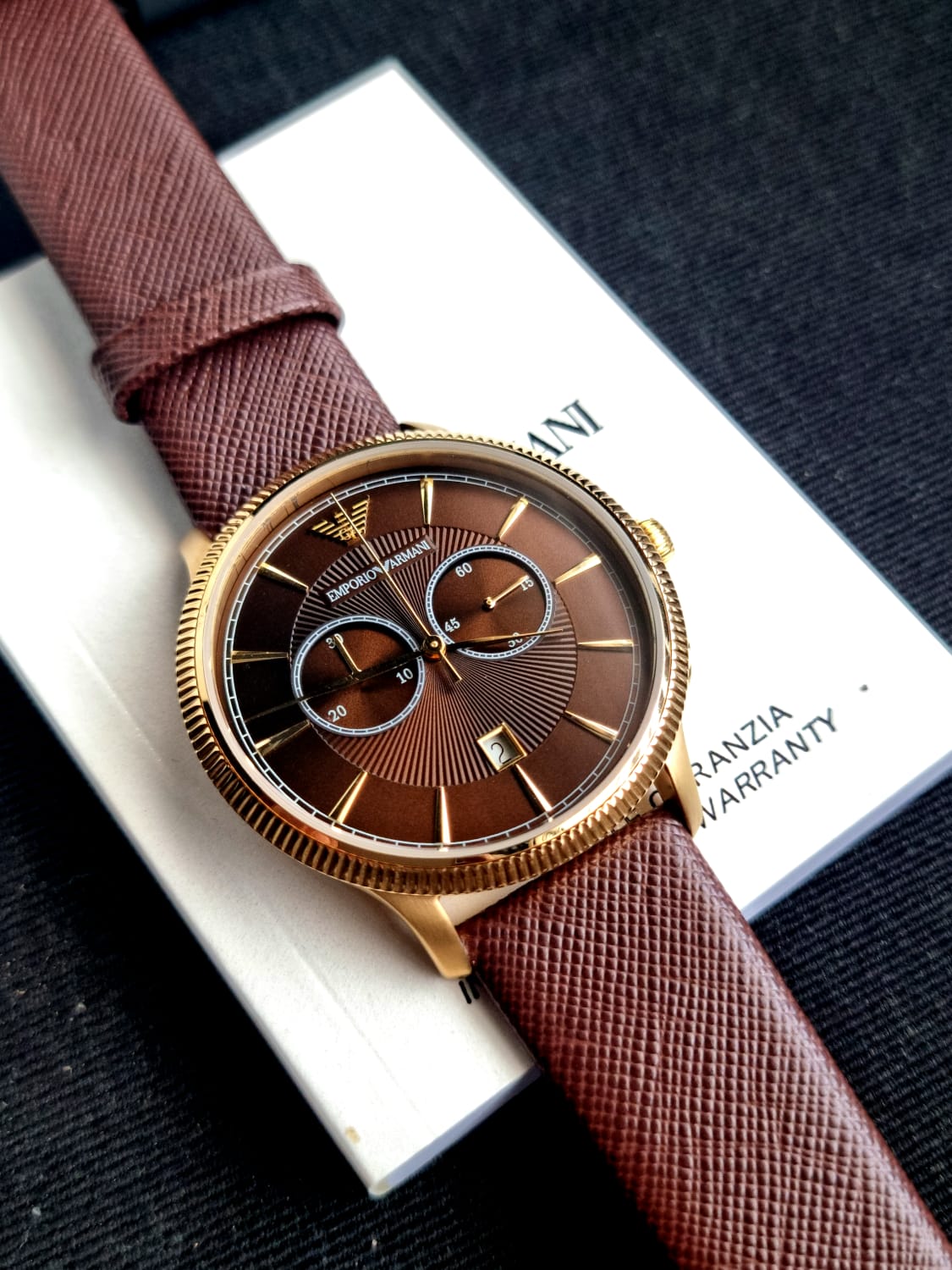 Emporio Armani Men’s Quartz Leather Strap Brown Dial 43mm Watch AR1793