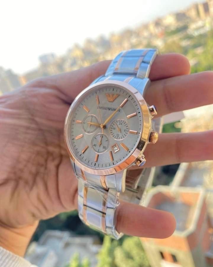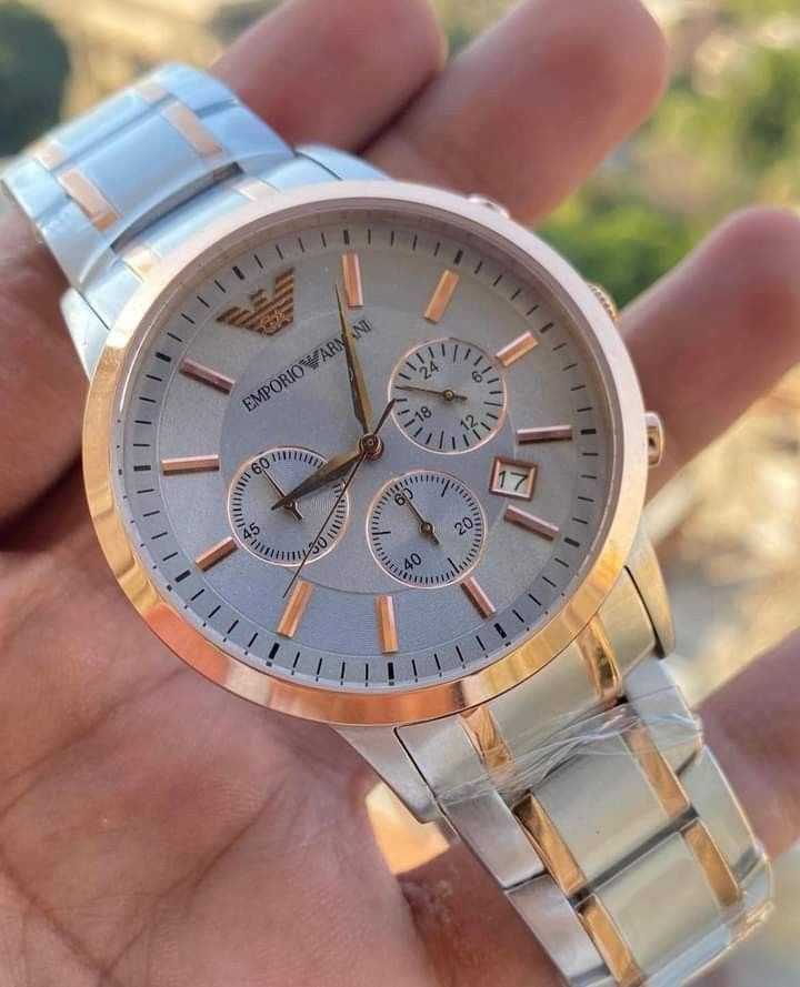 NEW EMPORIO ARMANI TWO 2 TONE SILVER+ROSE GOLD,CHRONO ,BRACELET WATCH-AR1826