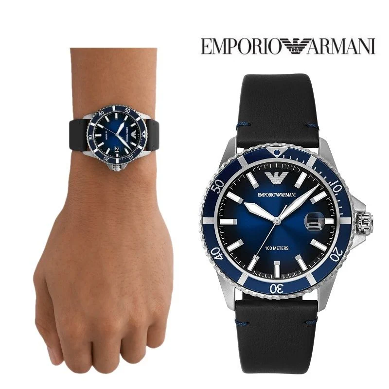 Emporio Armani Diver Three-Hand Quartz Blue Dial Blue Leather Strap Watch For Men - AR11516