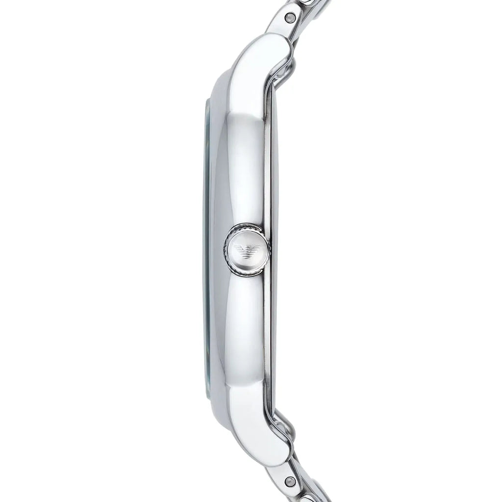 Men's analog watch by the Emporio Armani company, large size with a metal bracelet in silver color. It has a battery mechanism, which relies on the electricity provided by the battery, resulting in precision and durability. It is resistant to hand washing while not suitable for swimming (5 atm/50 meters).