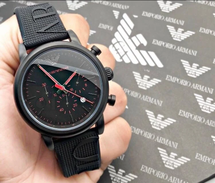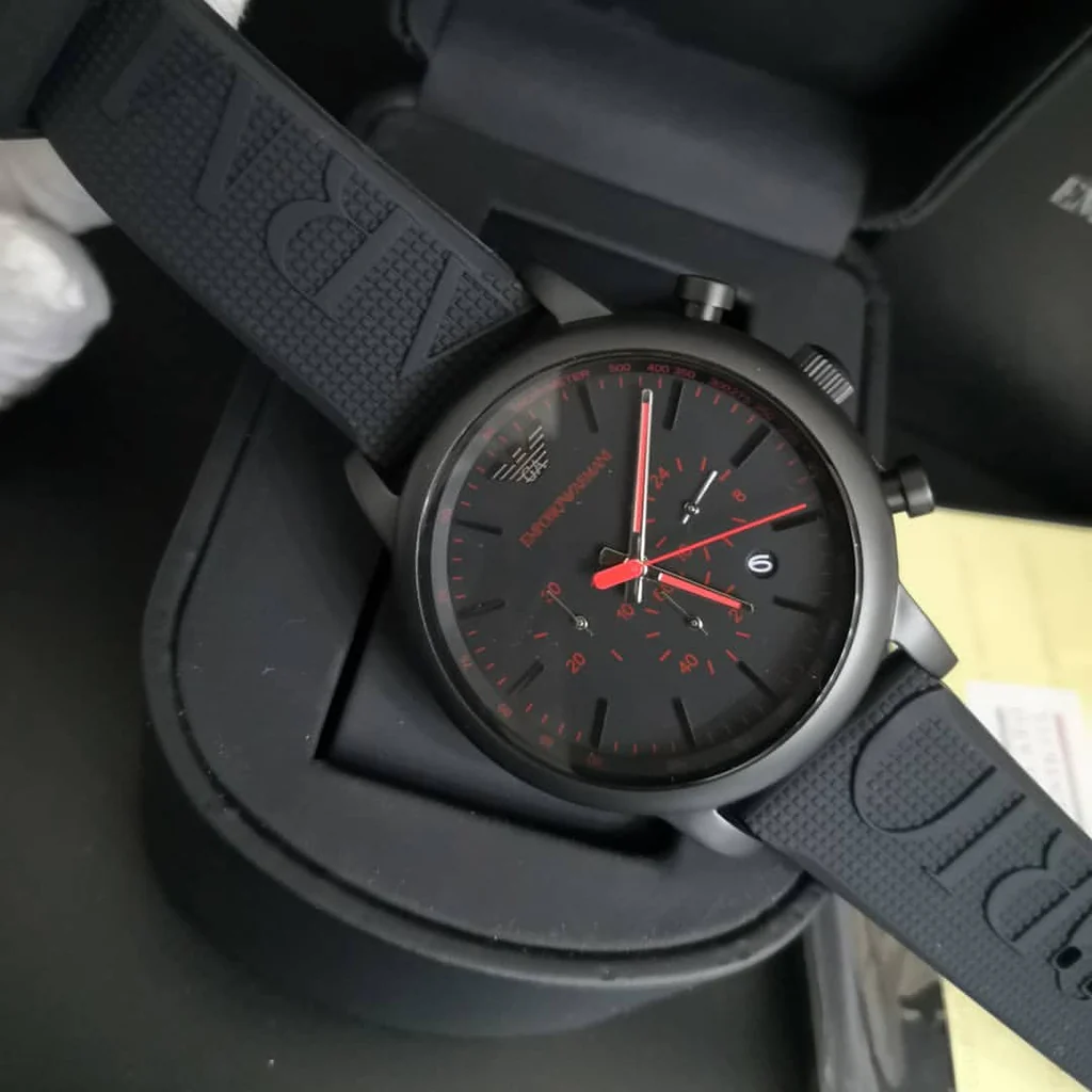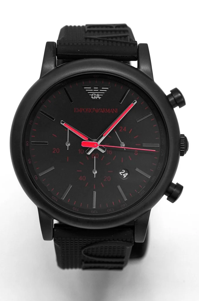 Emporio Armani Luigi Chronograph Black Dial Black Rubber Strap Watch For Men - AR11024