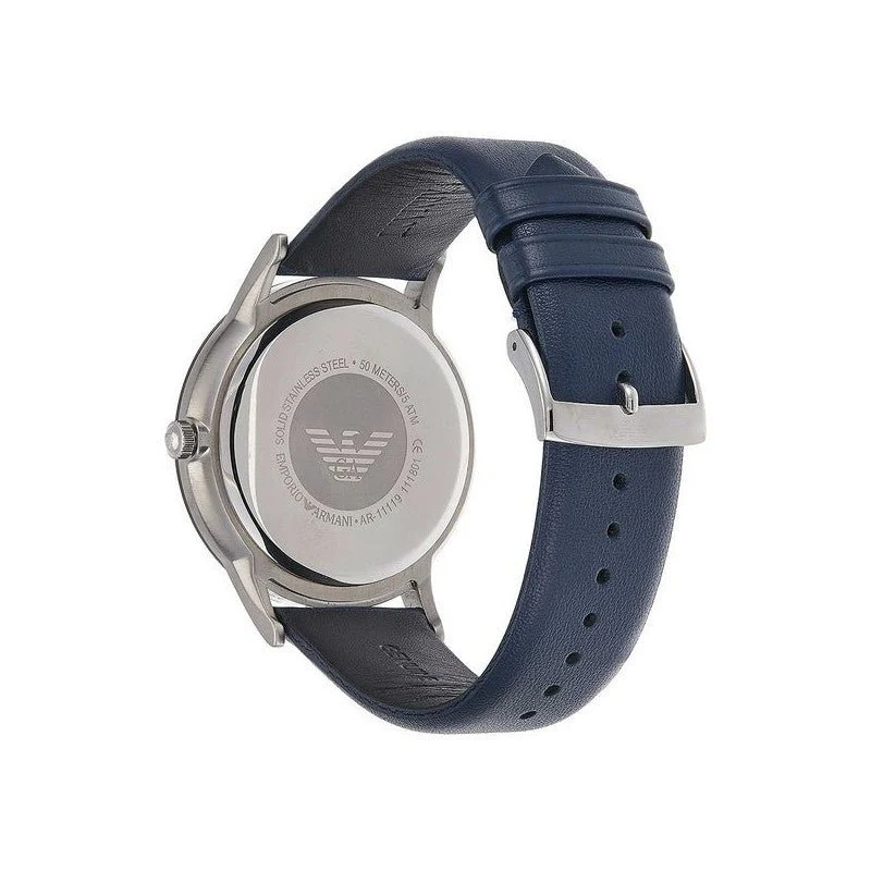 Emporio Armani Renato White DIal Blue Leather Strap Watch For Men - AR11119