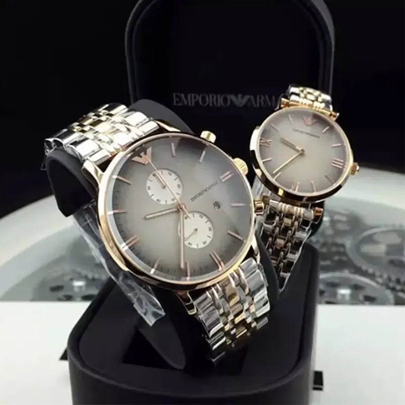 Emporio Armani Two-tone Couple Casual Watch- AR1721/AR1725