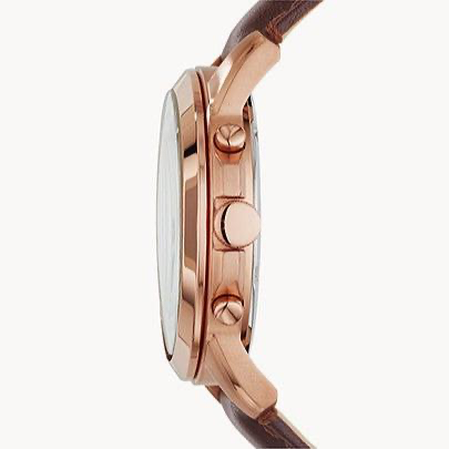Fossil FS-4991 Chronograph Leather Strap Men’s Watch. The case is made out of rose gold stainless steel with a rose gold bezel, which stands for the high quality of the item, it has a white dial. This model has got 50 meters of water resistance and also has a chronograph in it. it can be worn in scenarios where it is likely to be splashed but not immersed in water and will be fine in rain. The watch is shipped with an original box and a guarantee from the manufacturer.