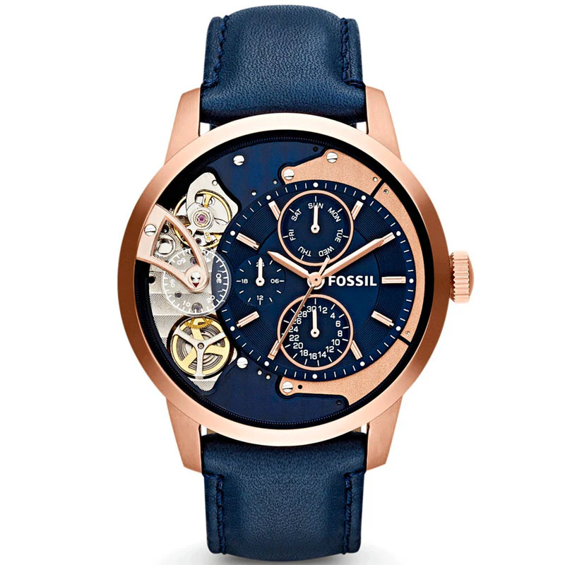 Fossil Townsman Twist Skeleton Blue Dial Blue Leather Strap Watch For Men - ME1138