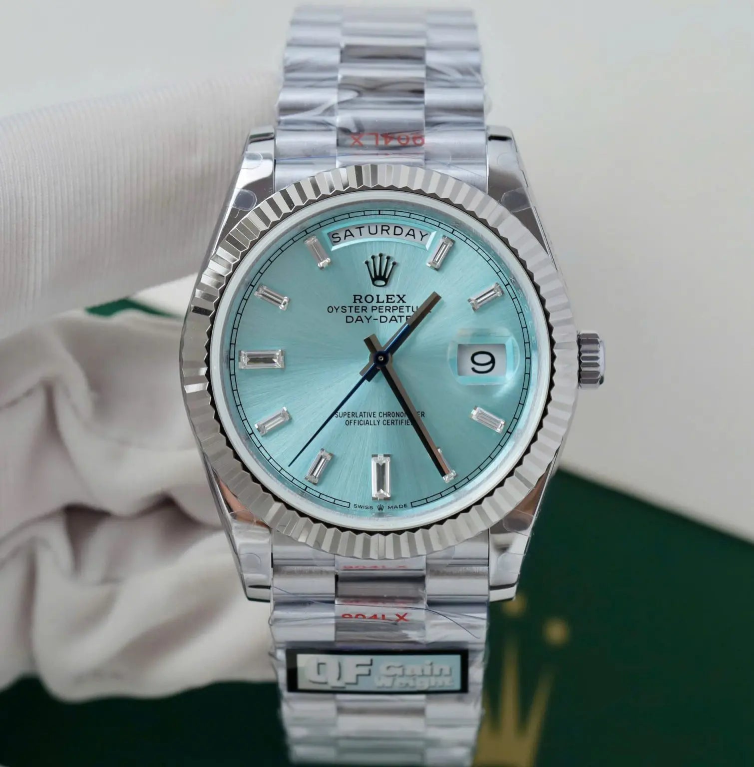 Rolex Luxury Swiss 1:1 Watch Day-Date Ice Blue Dial Weight 186 Grams QF Factory 40mm