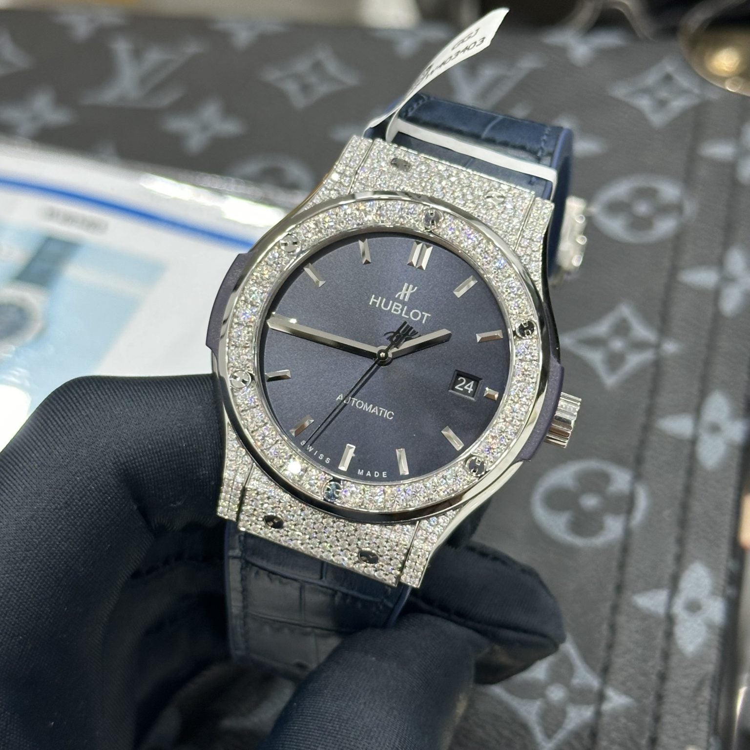 Hublot 1:1 Swiss Classic Fusion Titanium Diamonds Blue Dial Customs Moissanite 42mm