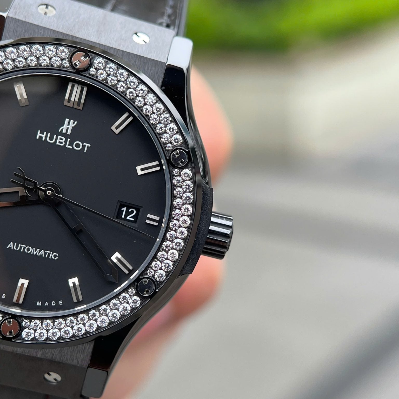 Hublot 1:1 Swiss Watch Classic Fusion Black Ceramic Diamonds Bezel JJZ Factory 42mm