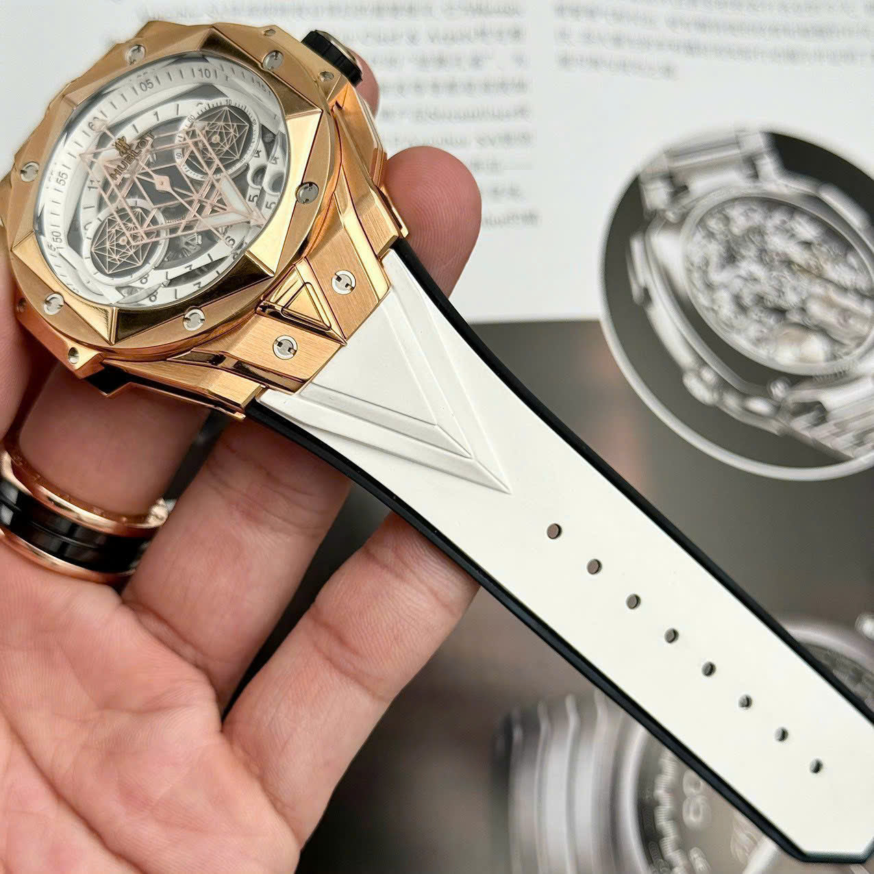 Hublot Big Bang Sang Bleu II King Gold Swiss 1:1 Watch White Rubber Strap BBF 45mm