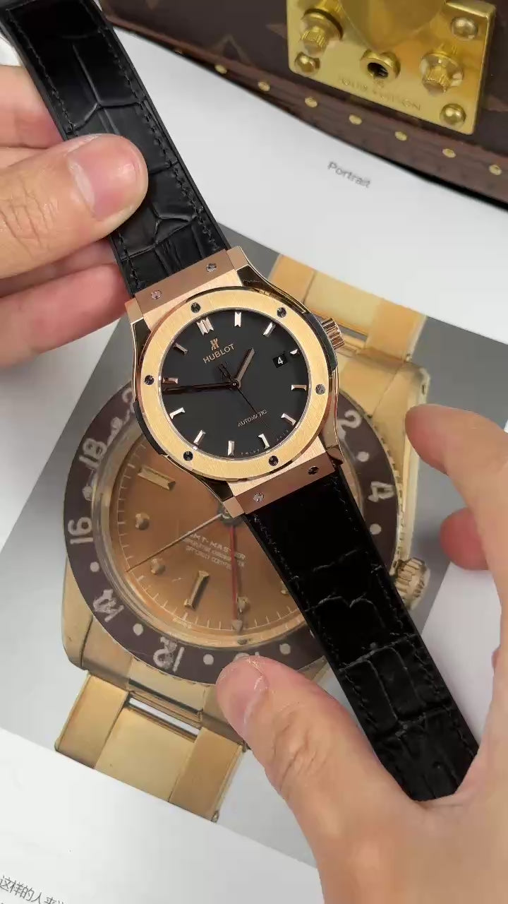 Hublot Classic Fusion King Gold Swiss 1:1 Watch Black Dial Weight 85 Grams JJZ Factory 42mm