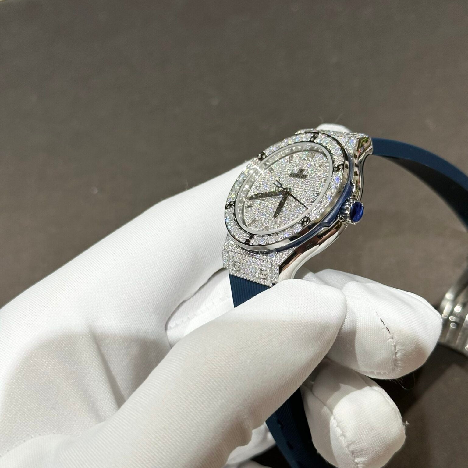 Hublot Classic Fusion Swiss 1:1 Watch Blue Rubber Strap Moissanite Diamond 33mm