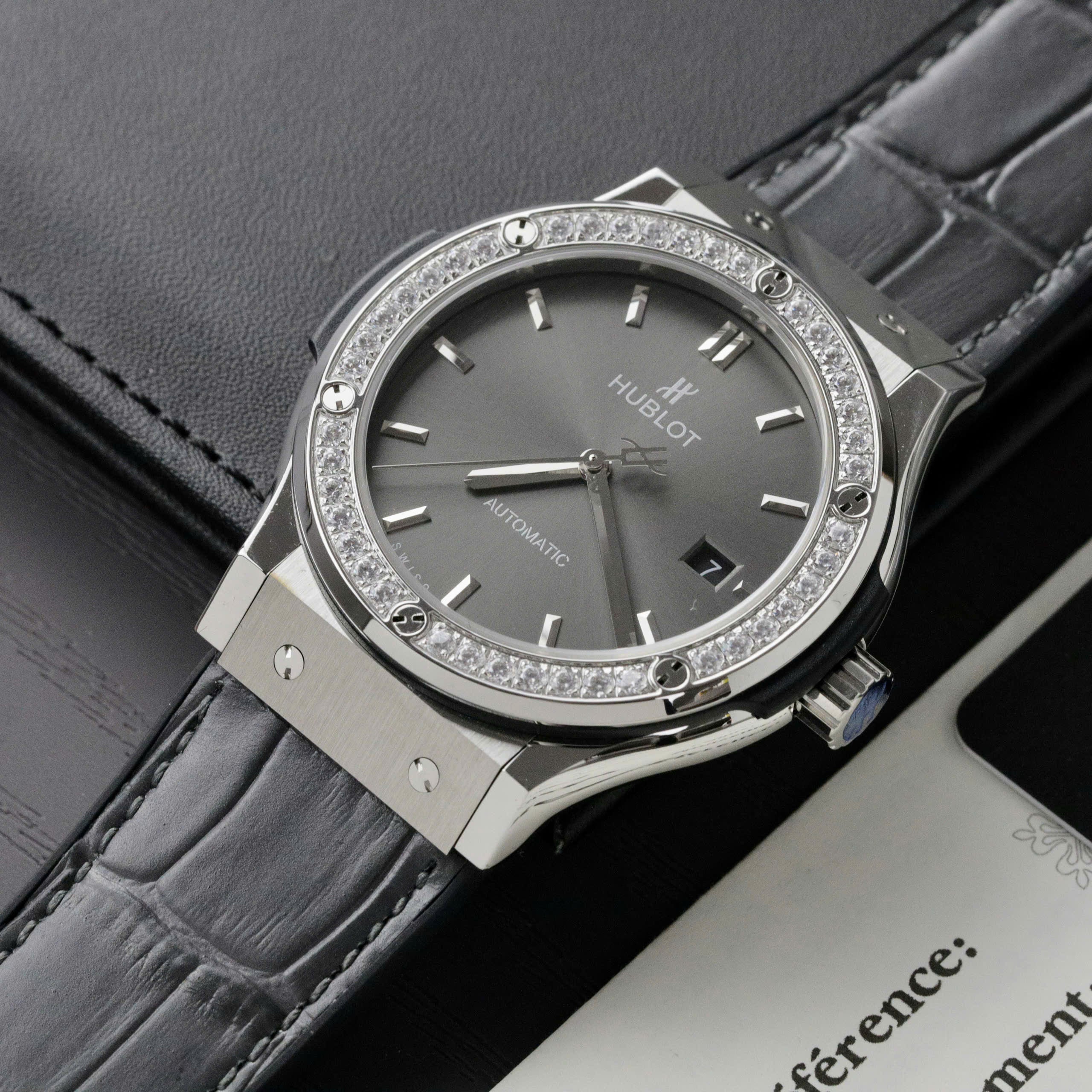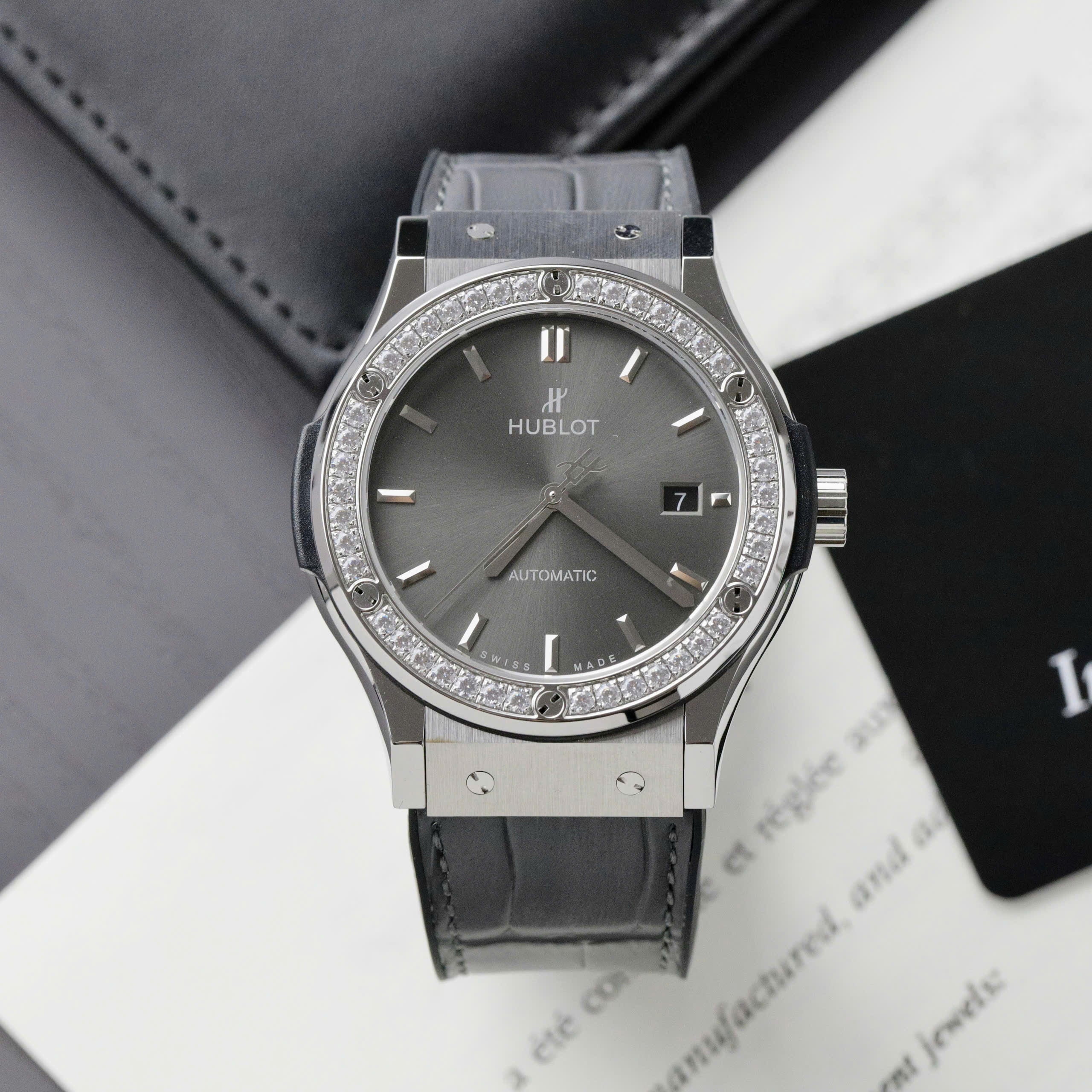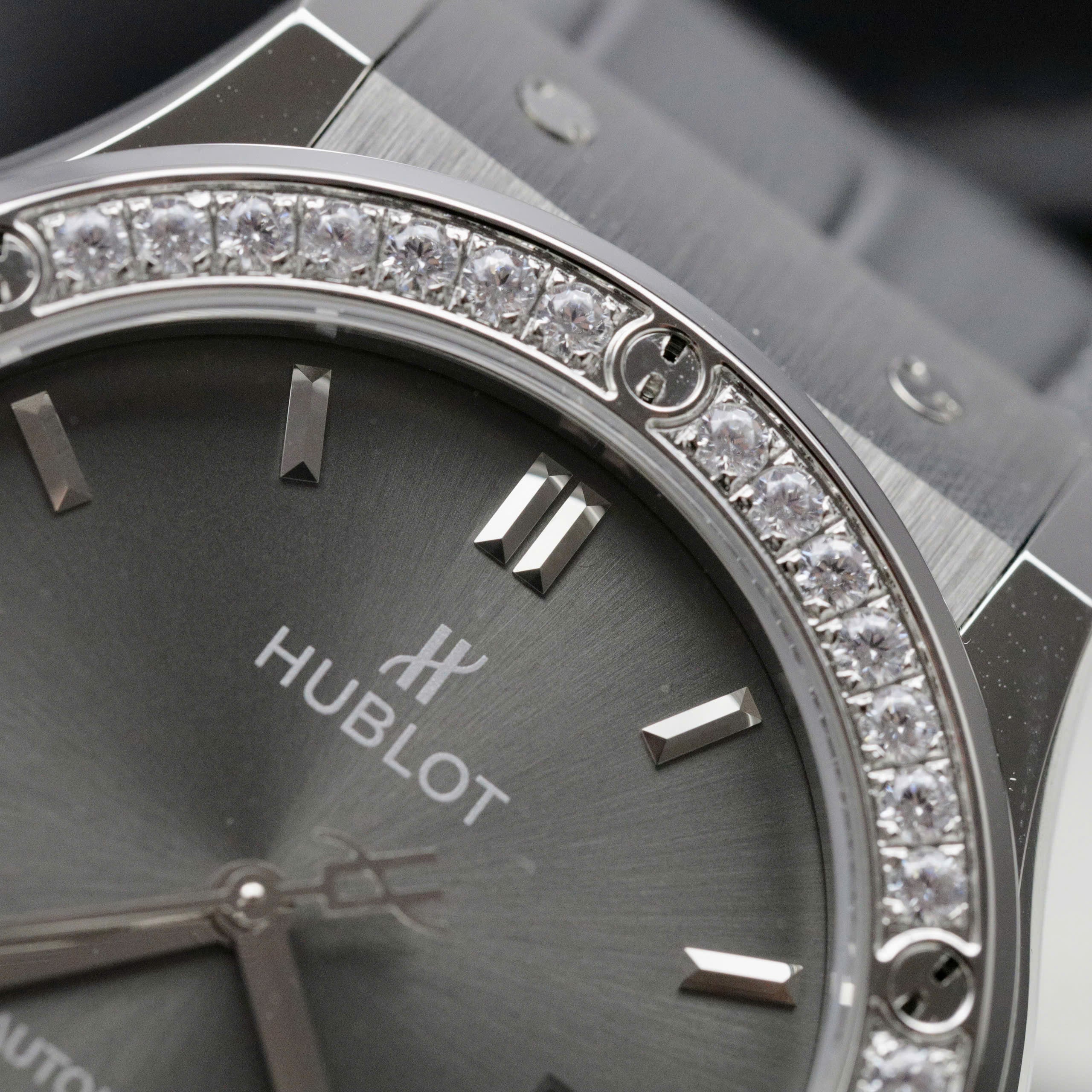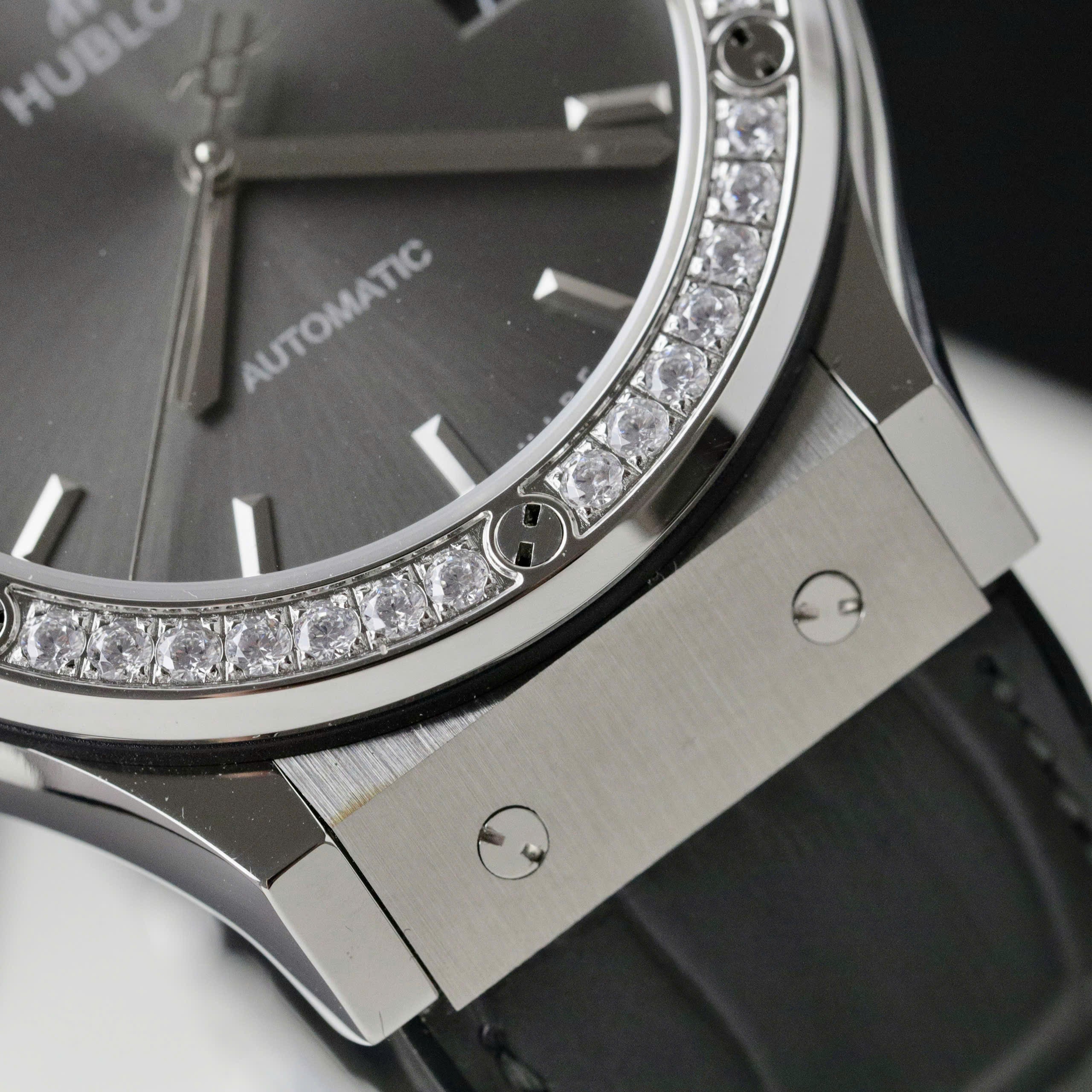 Hublot Classic Fusion Swiss 1:1 Watches Gray Dial Stone Bezel HB Factory 42mm