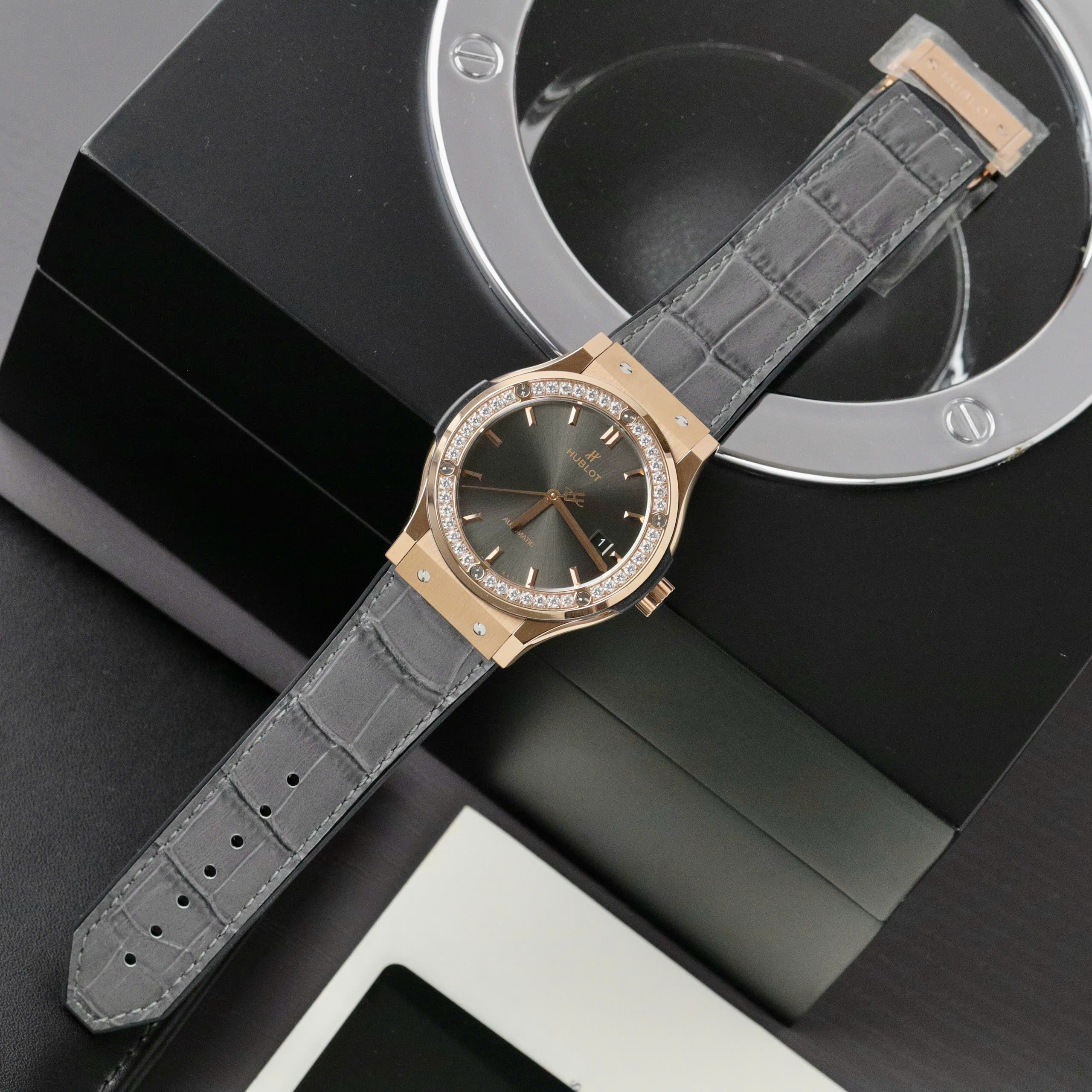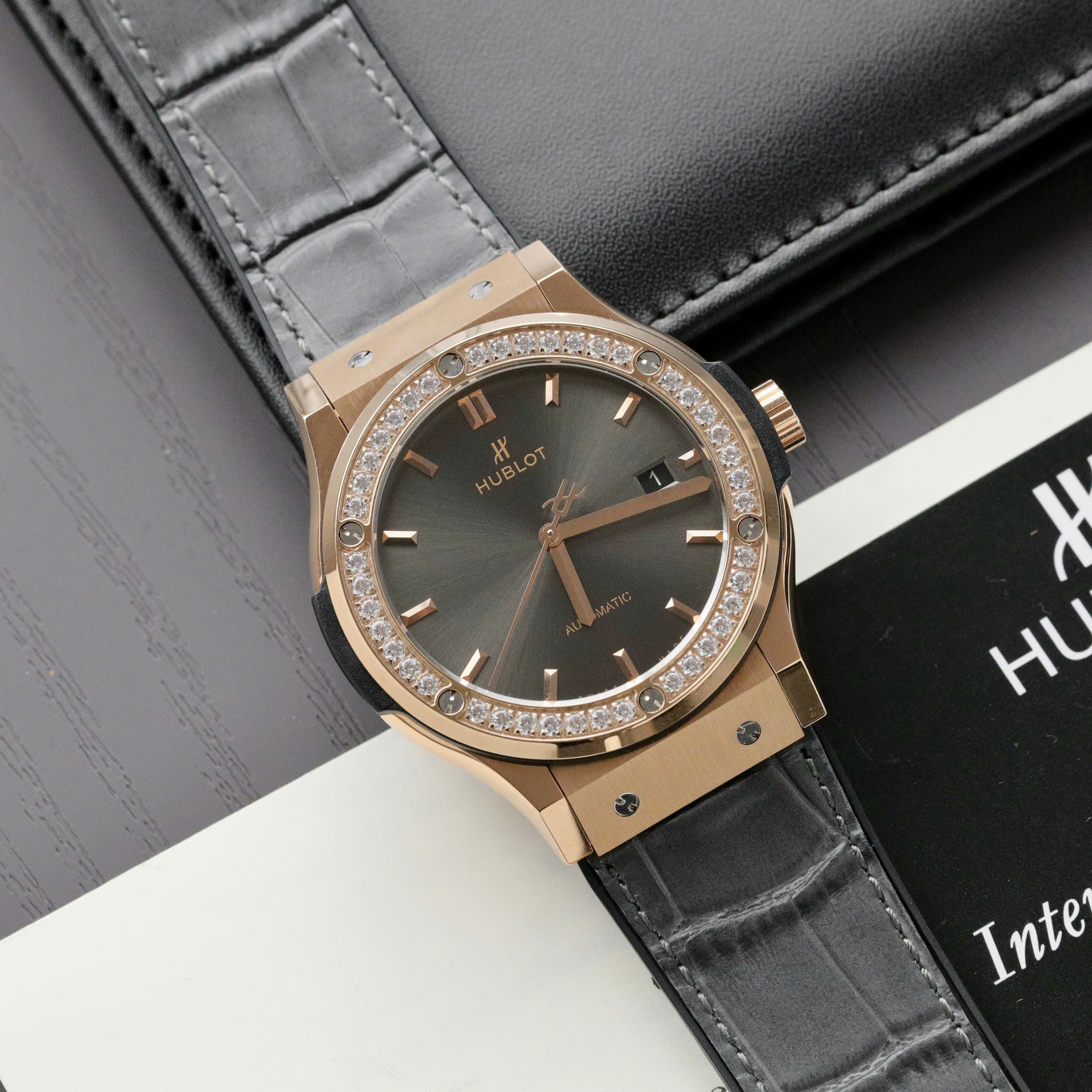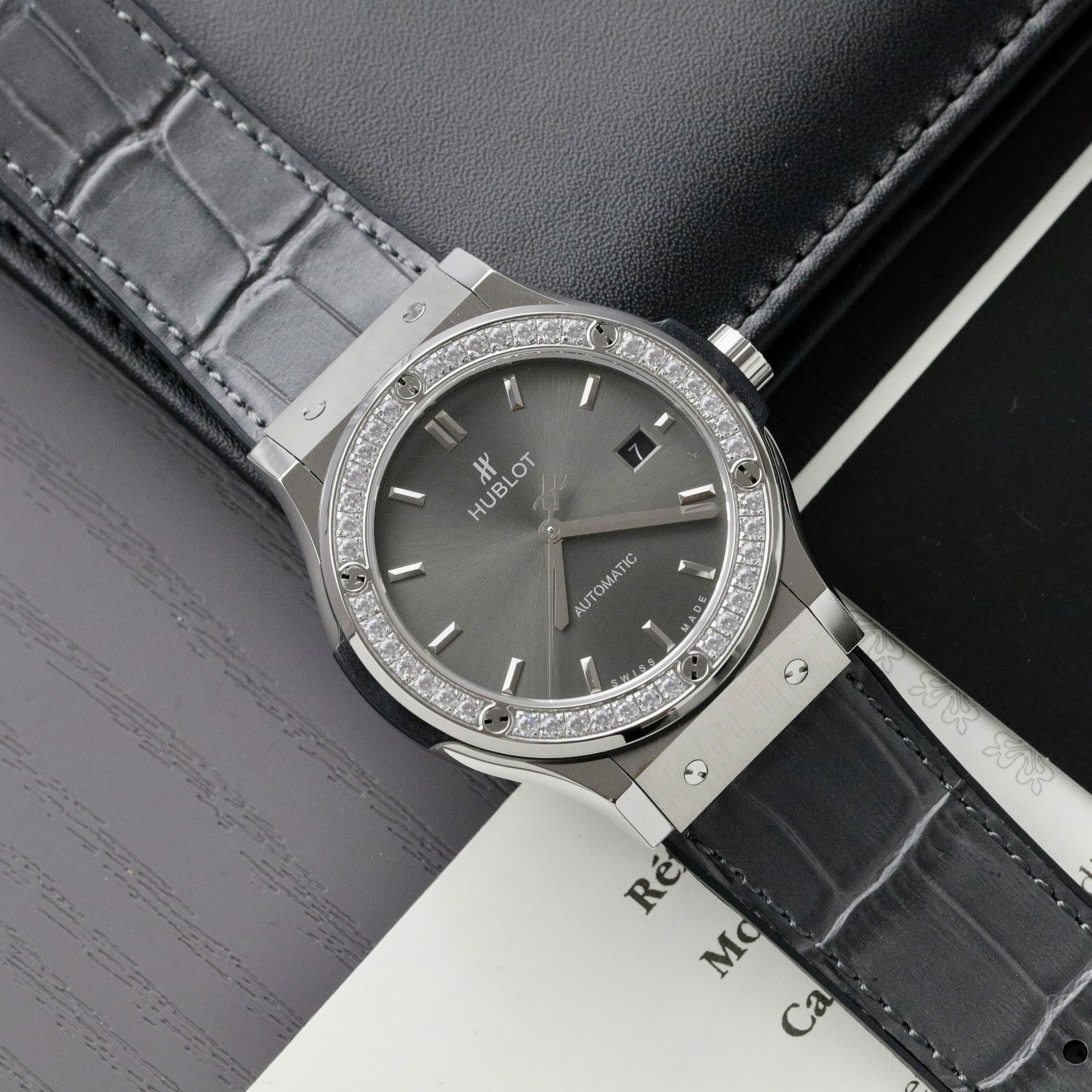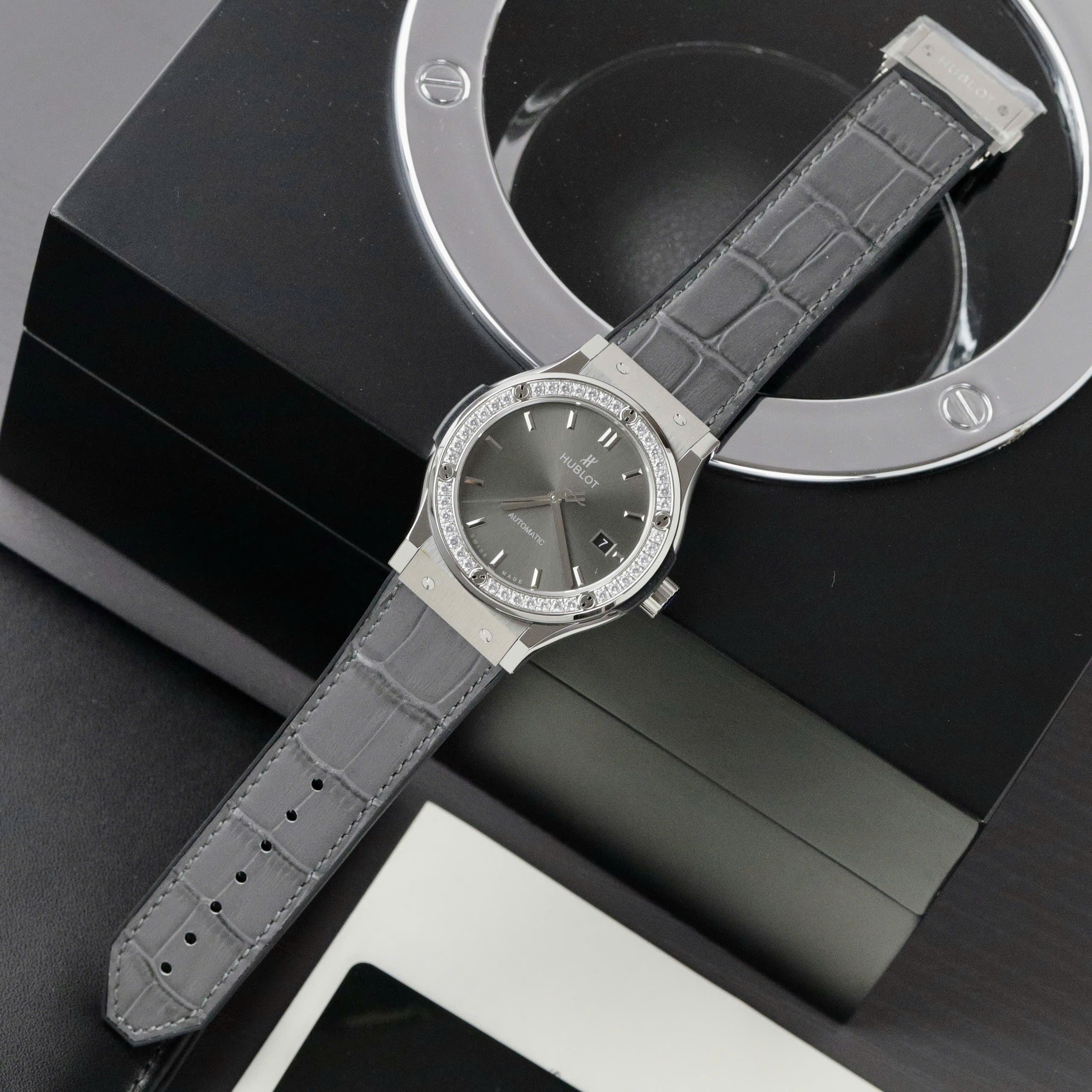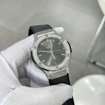 Hublot Classic Fusion Swiss 1:1 Watches Gray Dial Stone Bezel HB Factory 42mm