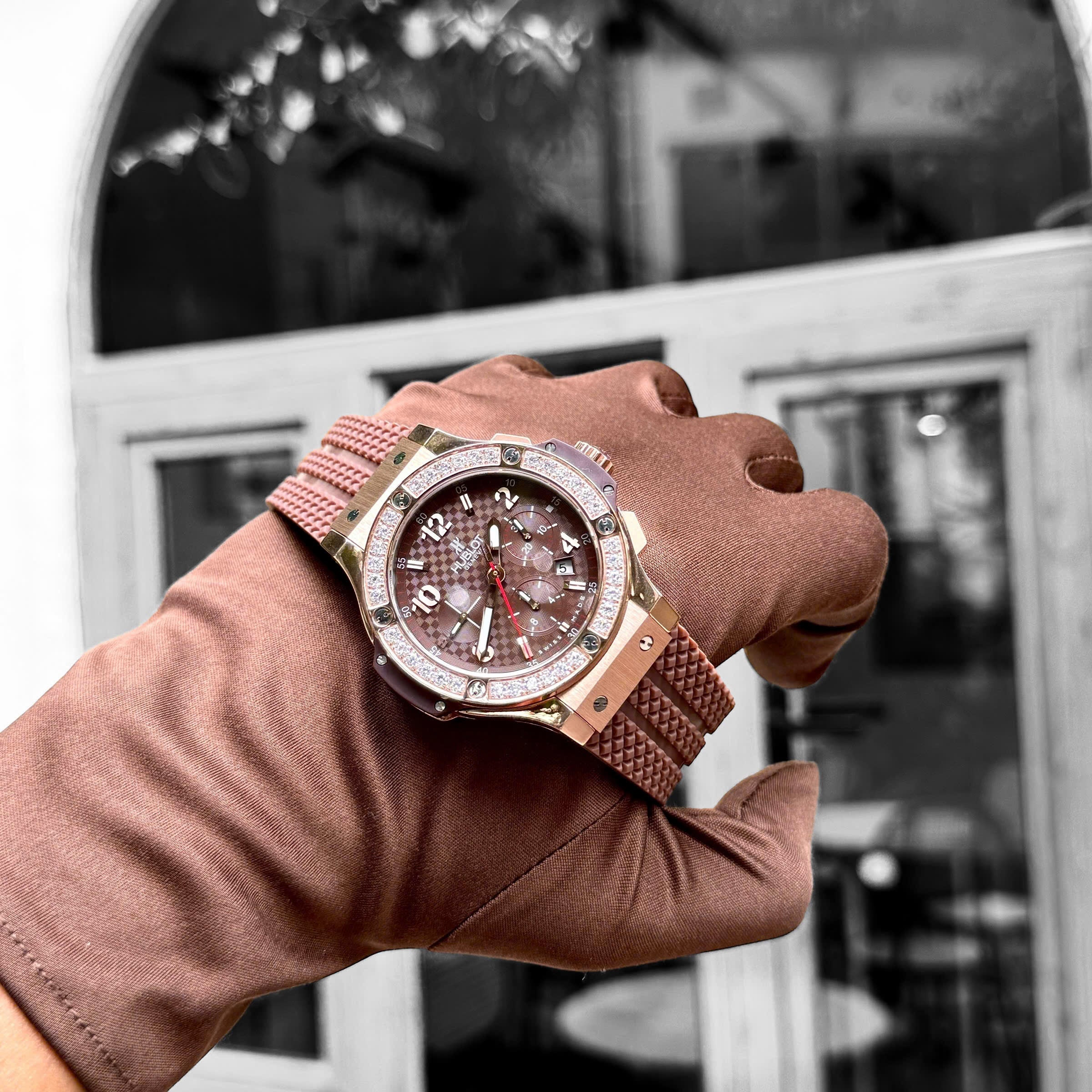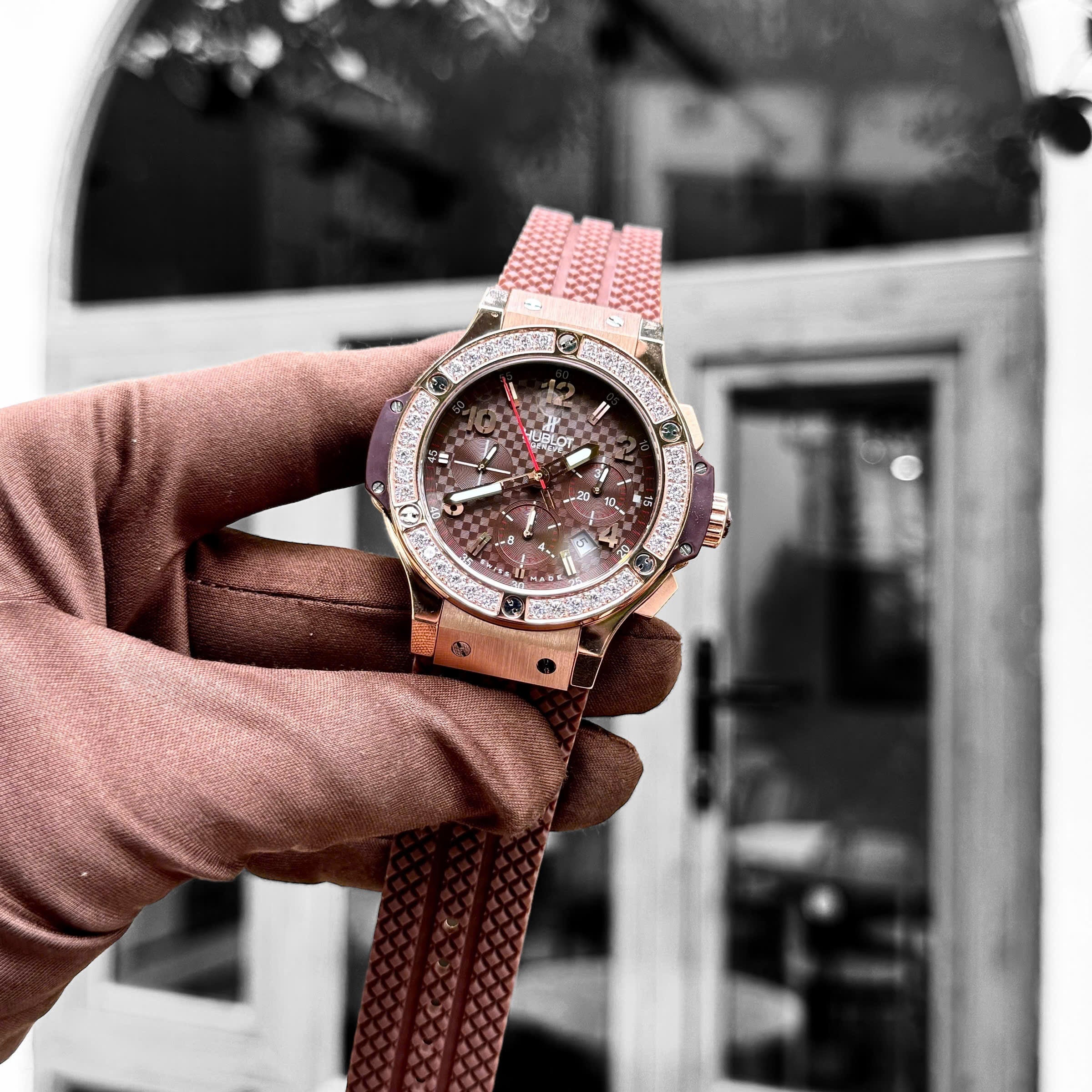 Hublot Swiss 1:1 Big Bang Chronograph Fake Watches Brown Rubber Strap 44mm
