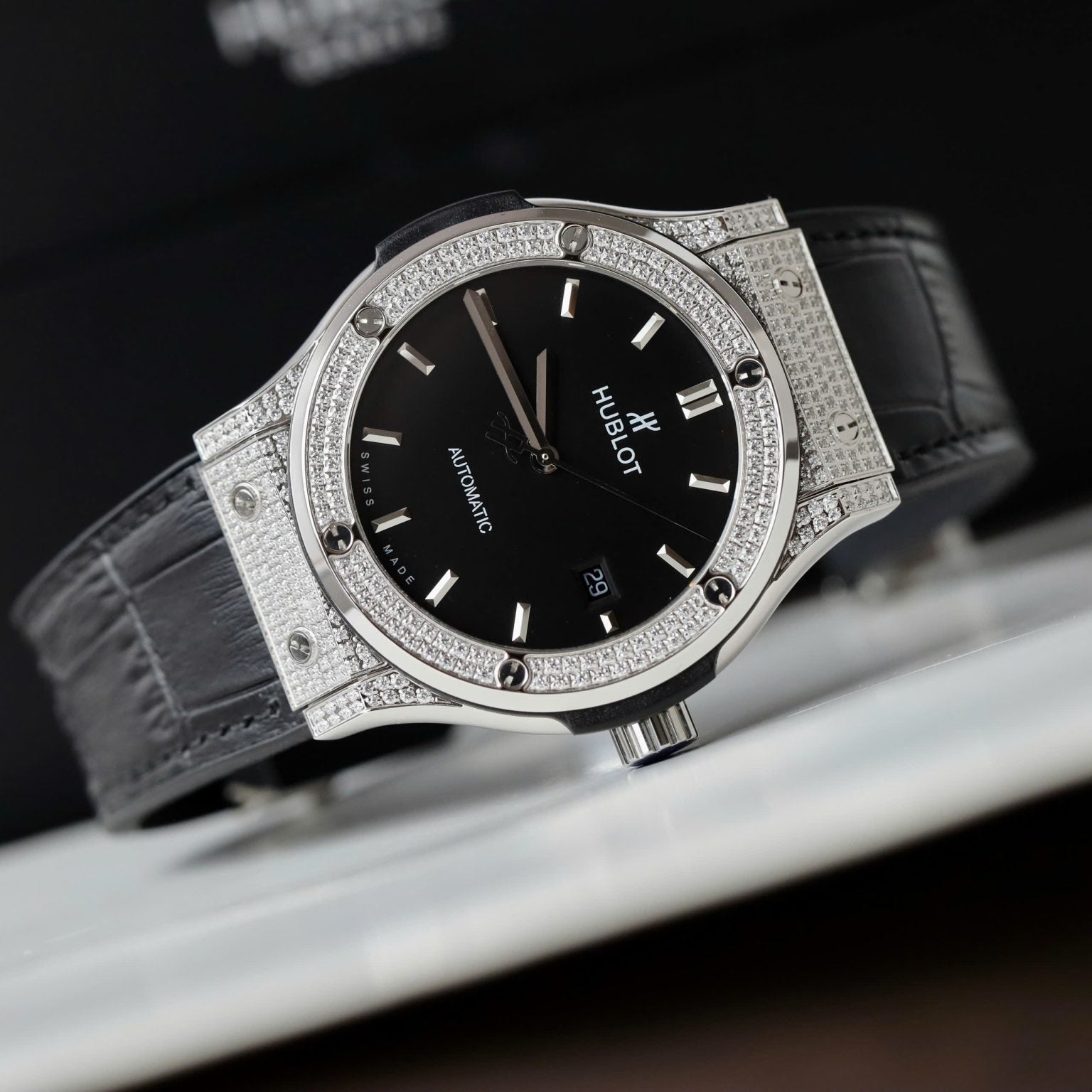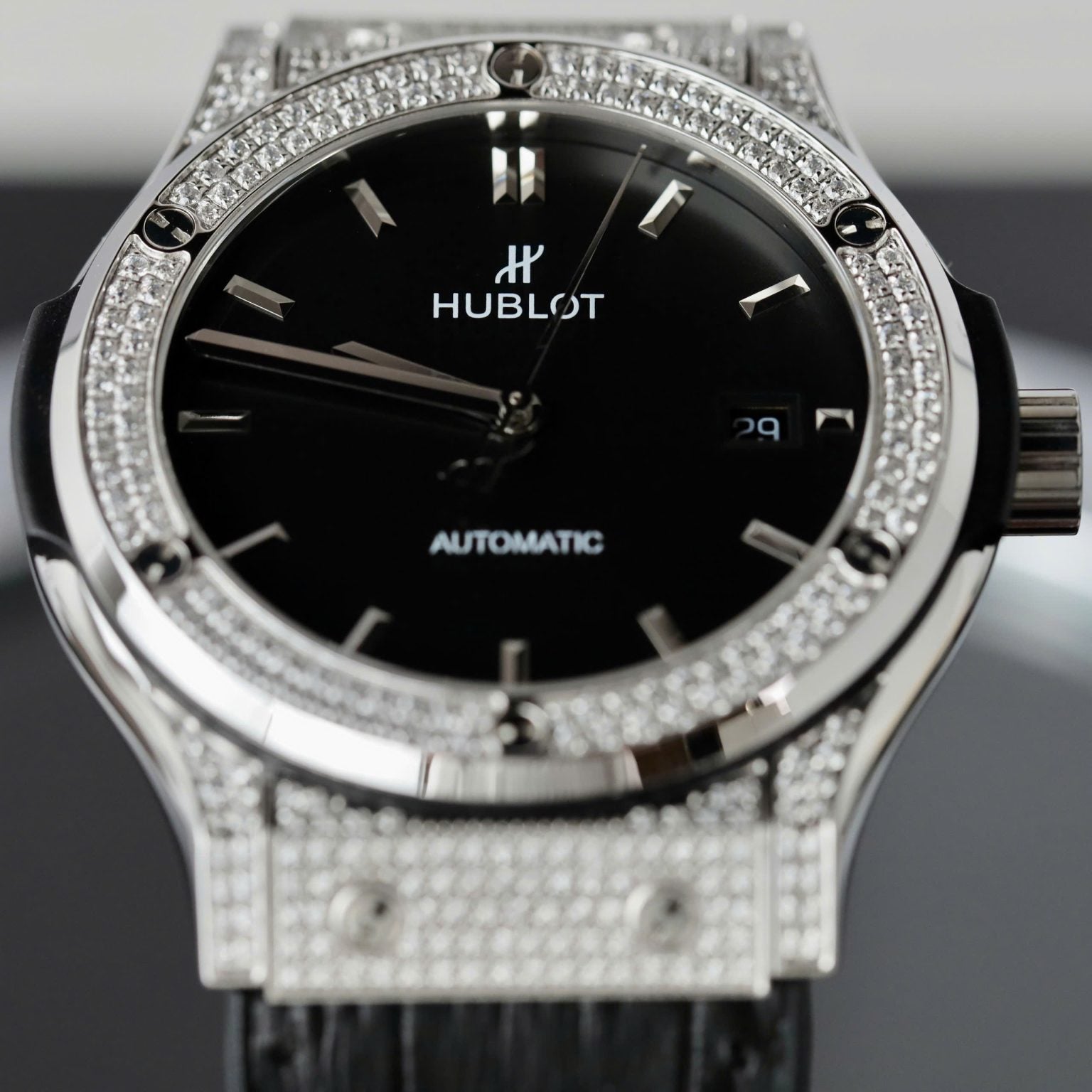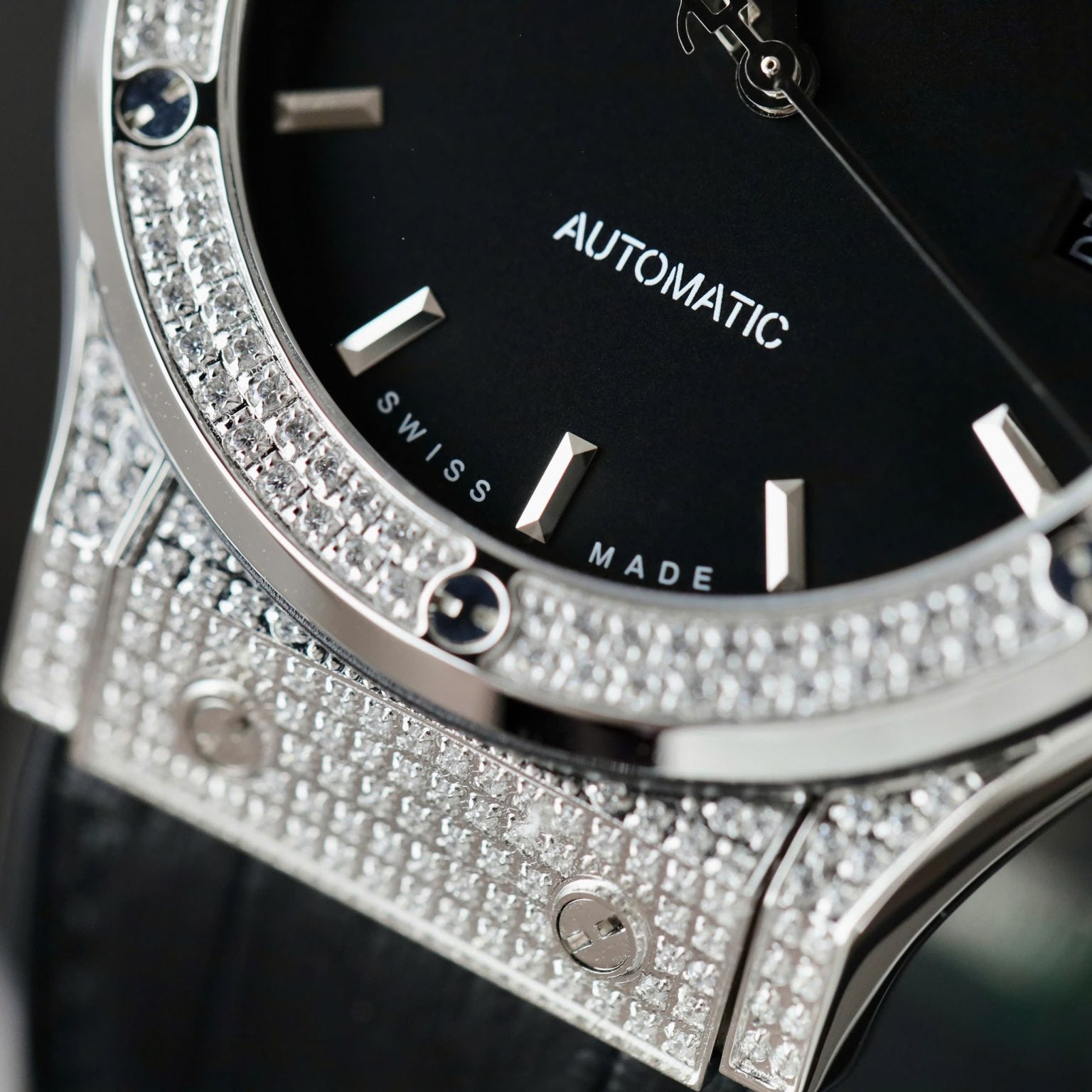 Hublot Swiss 1:1 Watch Classic Fusion Titanium Black Dial Full Diamonds CZ 42mm