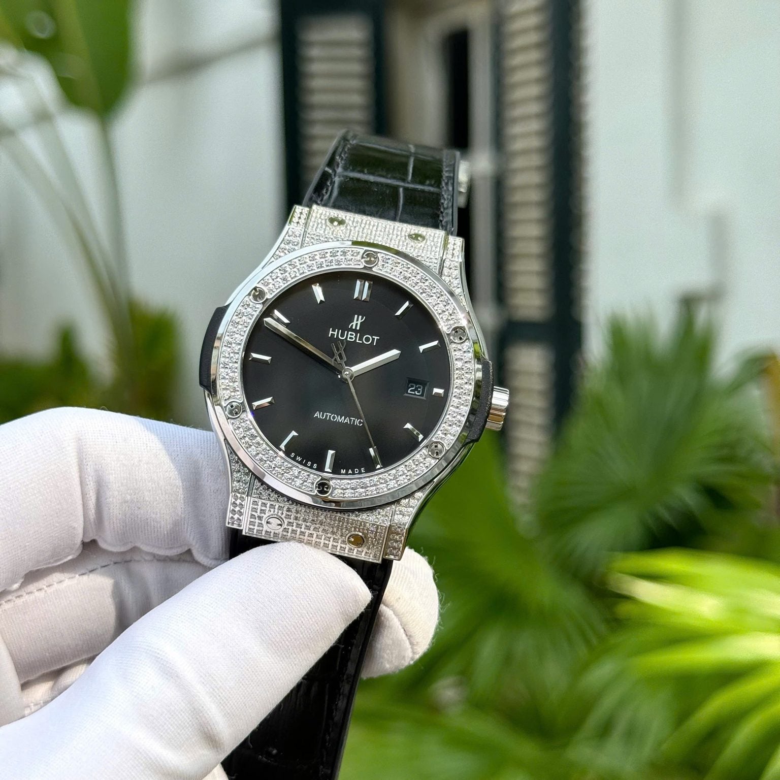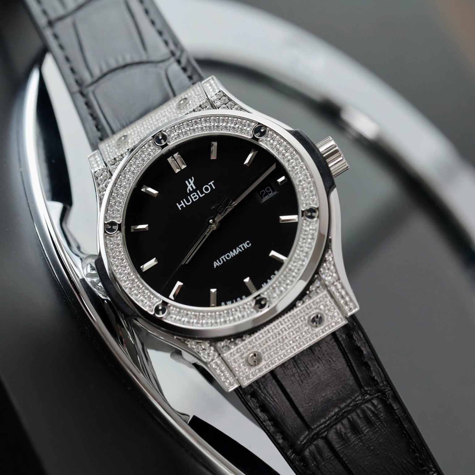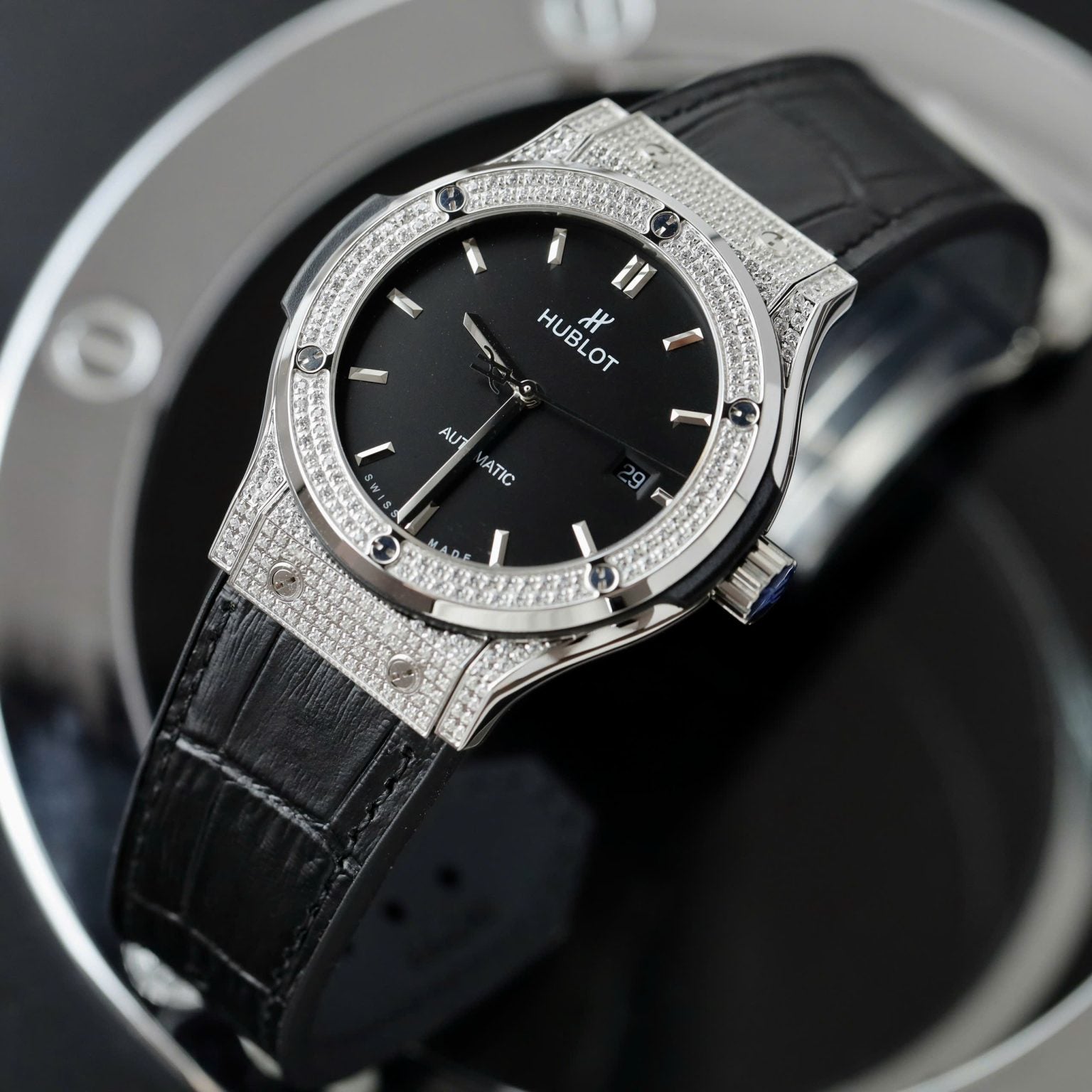 Hublot Swiss 1:1 Watch Classic Fusion Titanium Black Dial Full Diamonds CZ 42mm