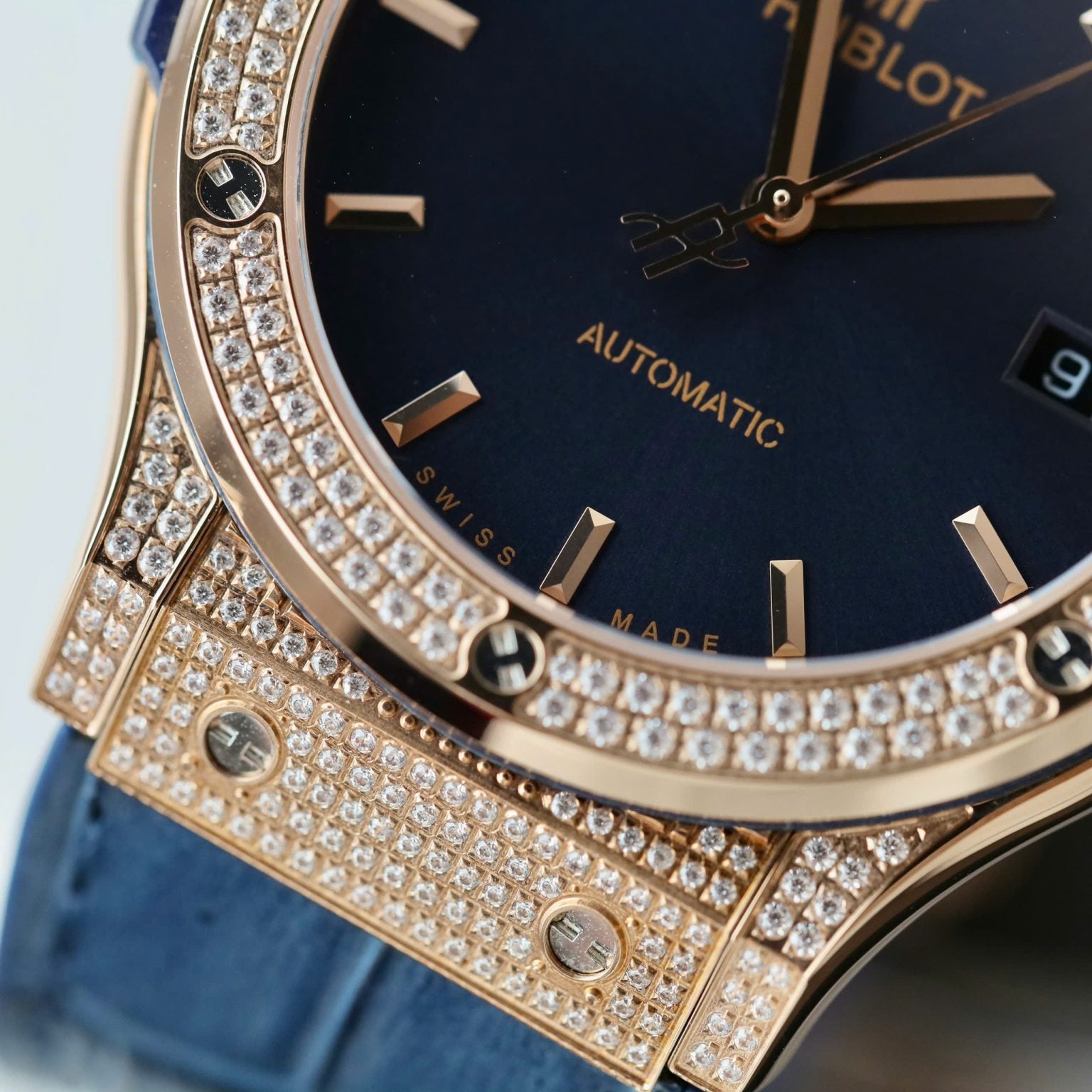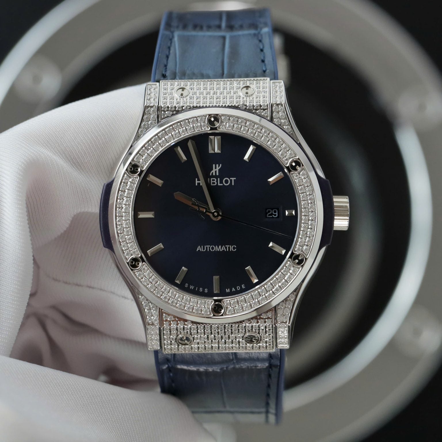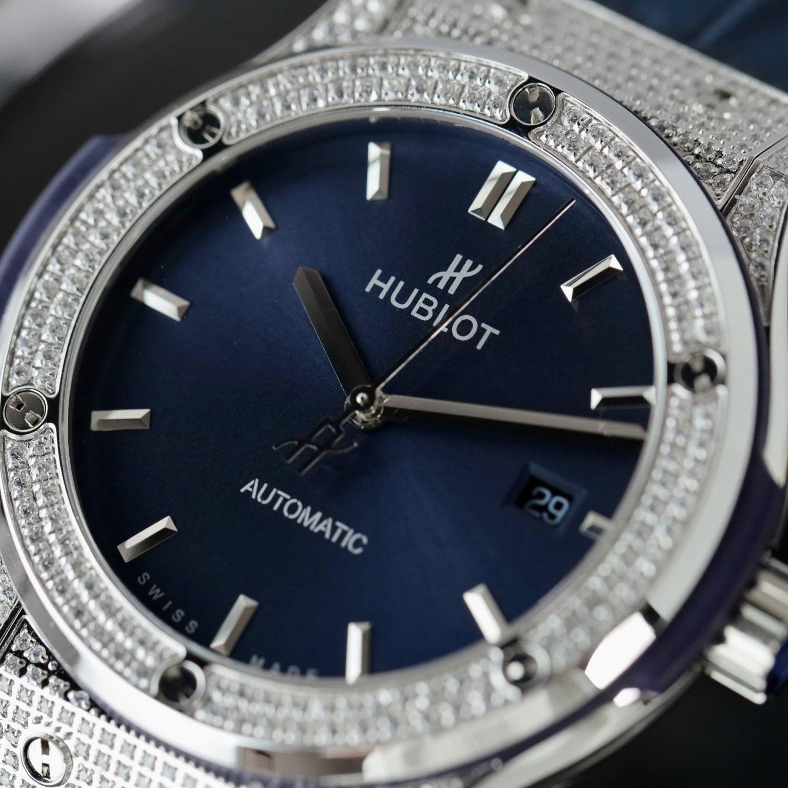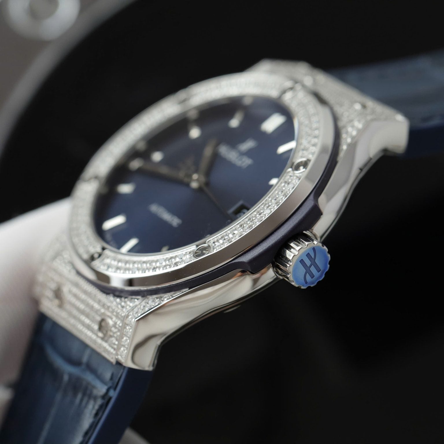 Hublot Swiss 1:1 Watch Classic Fusion Blue Dial Bezel Diamond HB Factory 42mm