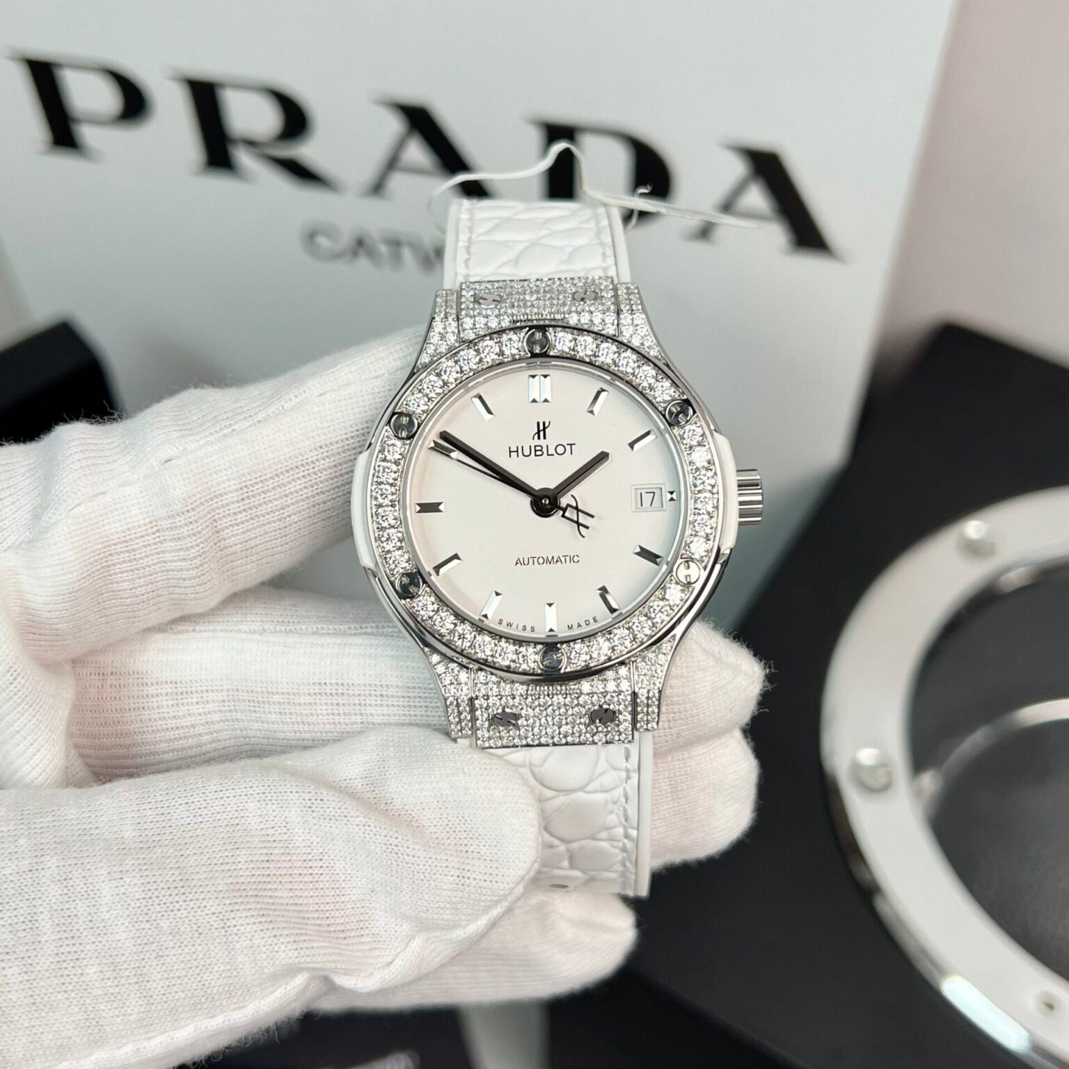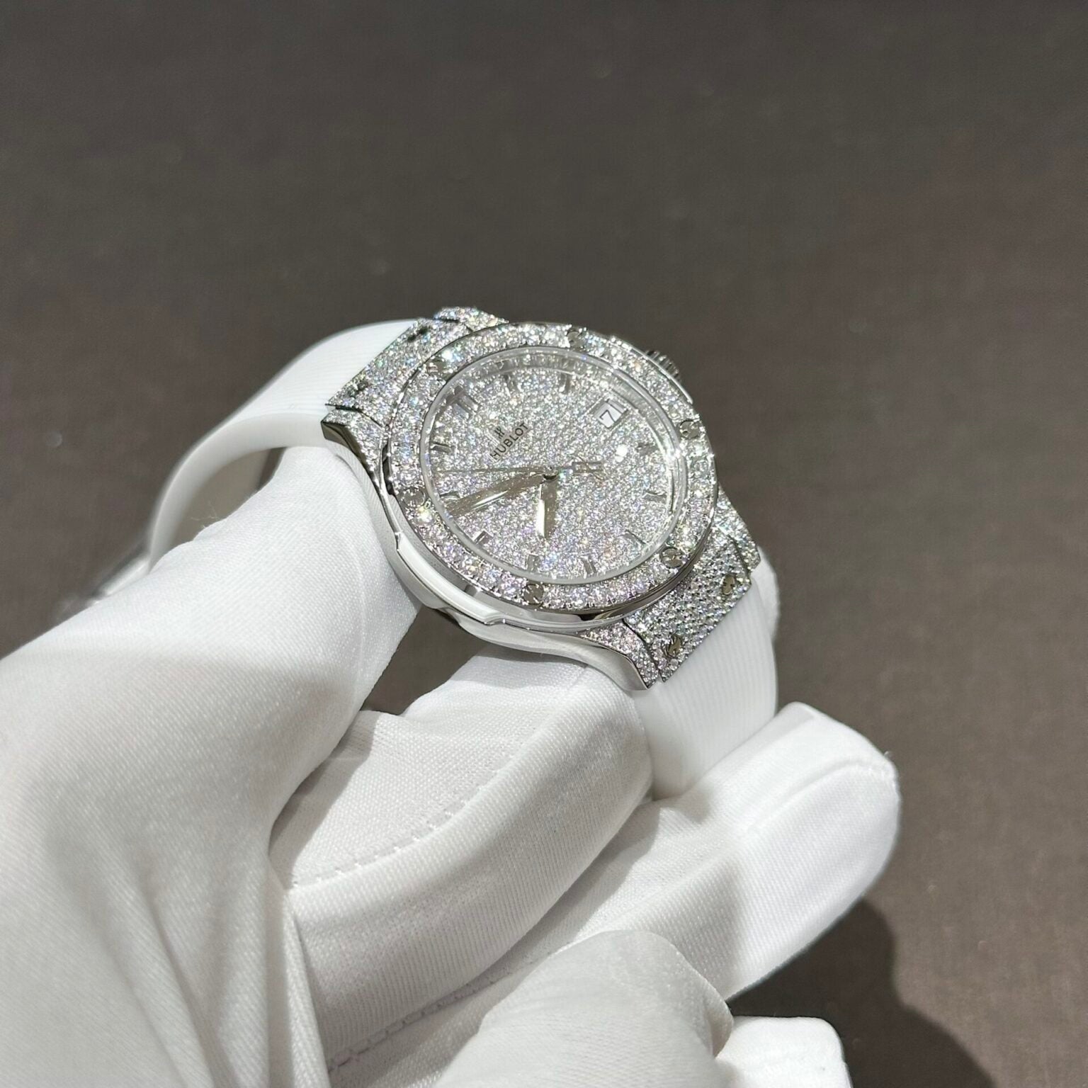 Hublot Classic Fusion Swiss 1:1 Watch White Full Moissanite Diamonds 33mm