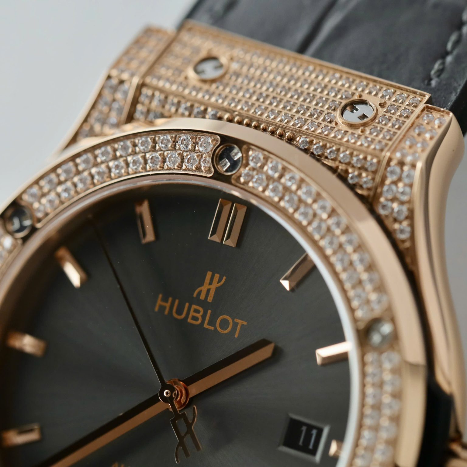 Hublot Swiss 1:1 Watch Classic Fusion King Gold Gray Dial Full Diamonds CZ 42mm