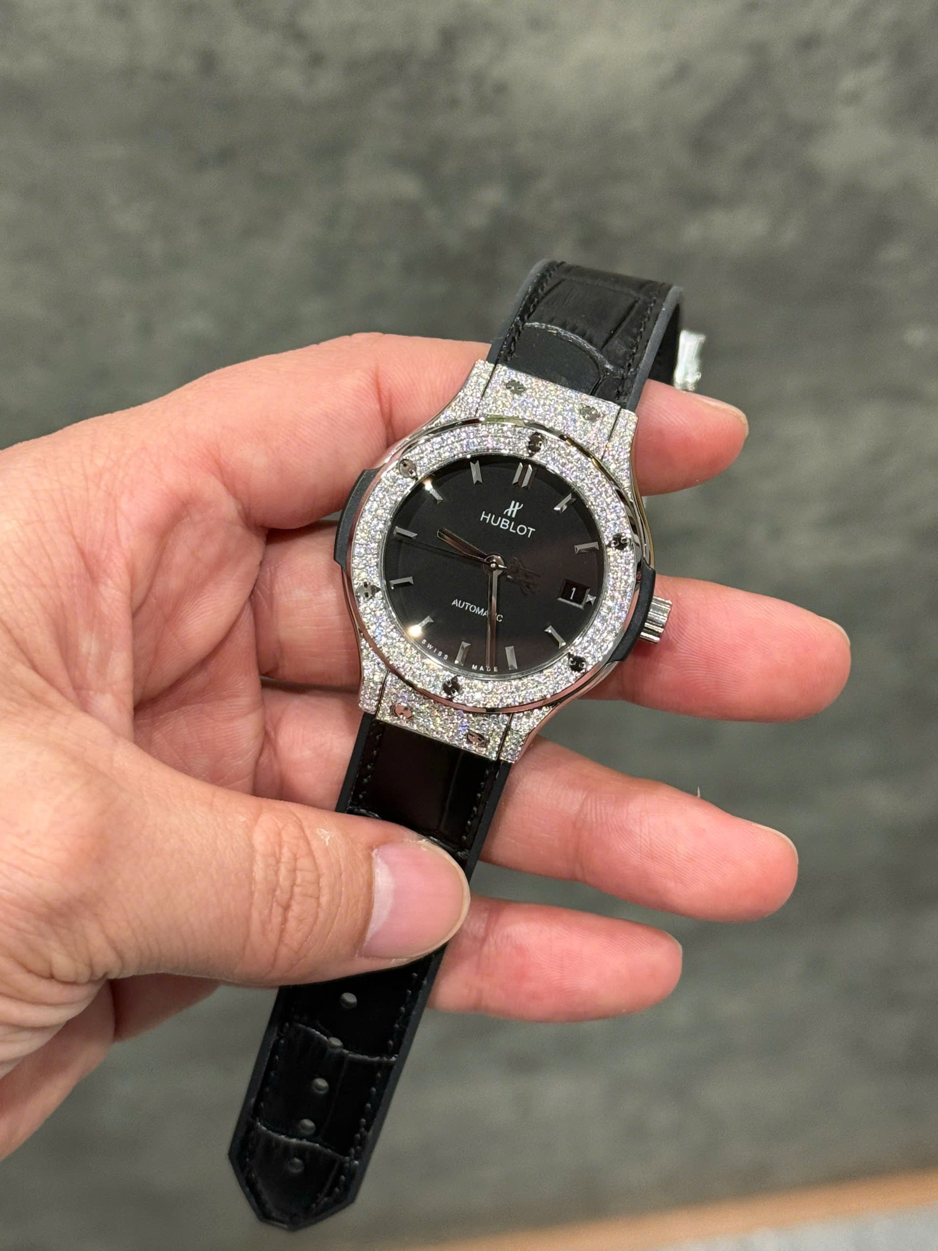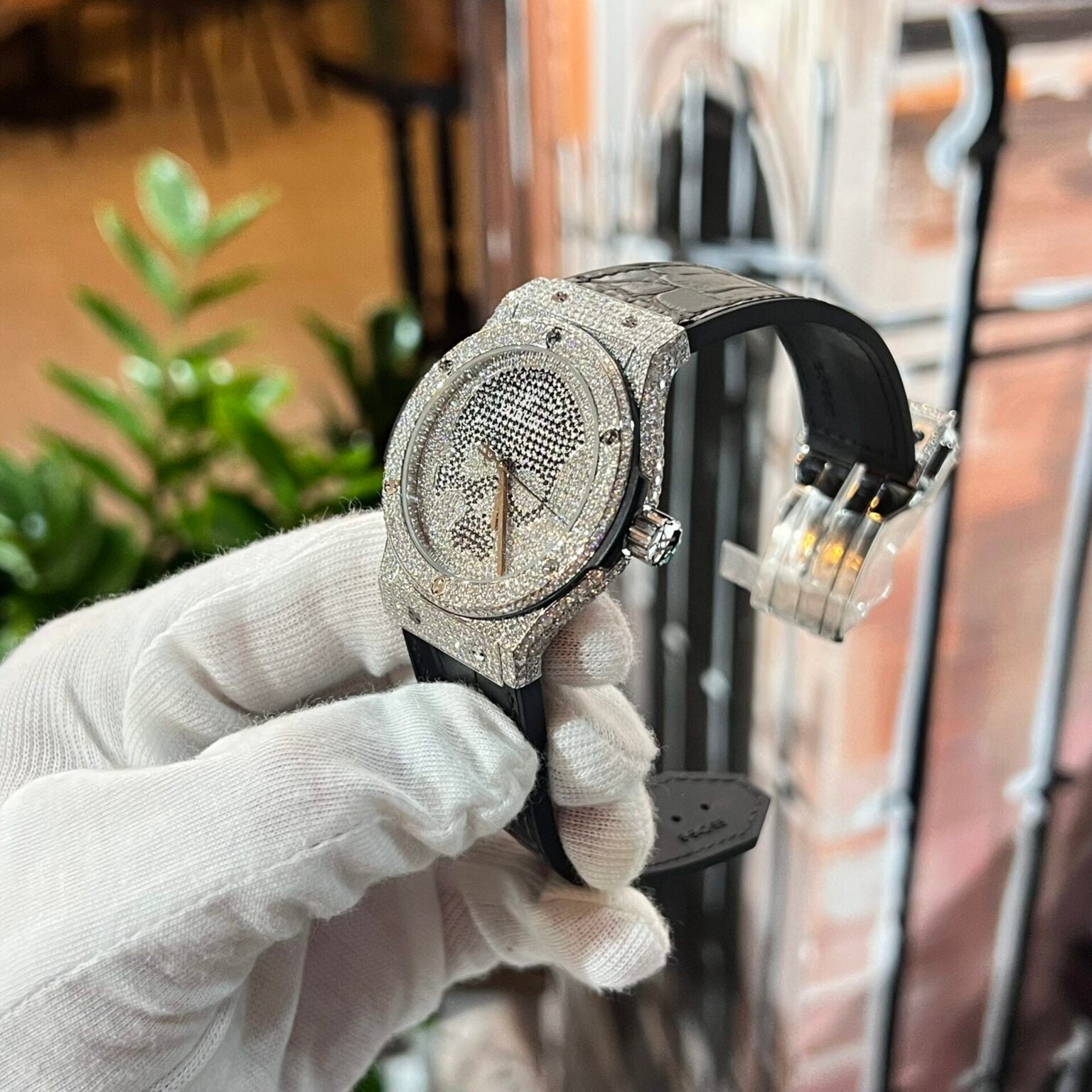 Hublot Classic Fusion Titanium Swiss 1:1 Watch Black Dial Custom Moissanite Diamonds 42mm