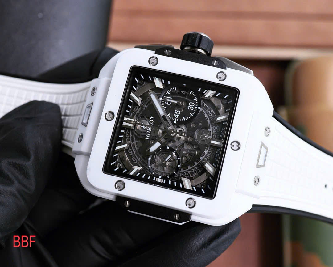 Hublot Square Bang Unico White Ceramic Swiss 1:1 Watches BBF Factory 42mm